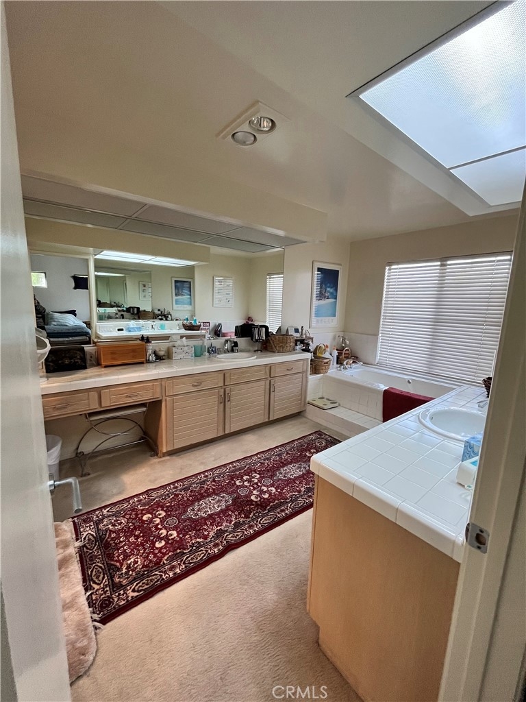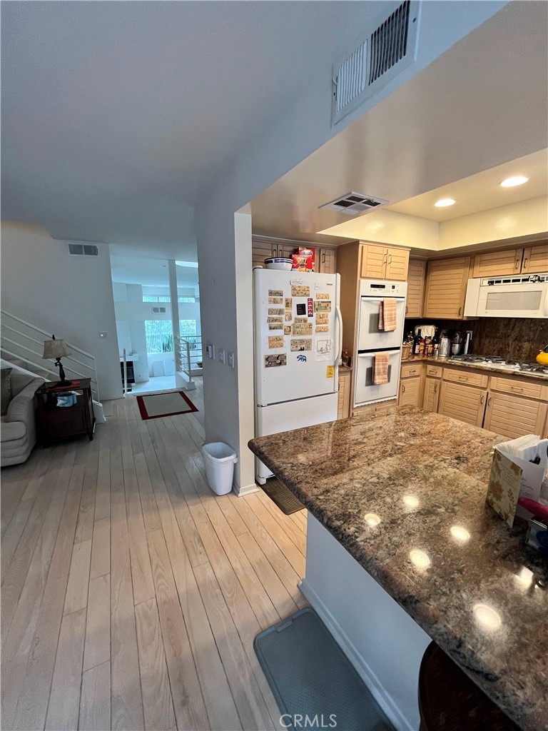Welcome home to this modern architectural Tri-level townhome in the center of Tarzana featuring a private yard/patio with mature fruit trees and lush landscaping with (fake grass) for much easier maintenance, plus an expansive rooftop deck. This 2150 sqft home showcases a formal living room with 30’ high glass panel walls, cathedral ceilings, wet bar and fireplace along with a step-up formal dining room, with fantastic lighting from multiple accent windows. Half bath is located on the entry landing level for guests. Laundry room conveniently located just inside the door and on top landing to the 2 car garage. Garage has an extra storage closet and under stairs storage nook. The chef’s kitchen with beautiful granite countertops and backsplash, overlooks the breakfast nook and cozy family room and first-floor balcony. Gas line located on balcony for BBQ. Large Master suite, showcased by floor-to-ceiling windows, fireplace and enormous master bathroom with Jacuzzi tub, walk-in shower plus dual vanity. All three bedrooms are upstairs. Full bath in hallway outside the other 2 bedrooms. Enjoy the extra Office space between the bedrooms, that no other unit in the complex has. Finally, escape to the expansive rooftop balcony with views of the mountains and city lights, the perfect place to relax and unwind with family and friends. Conveniently located close to the 101 freeway, Tarzana Hospital, minutes from shopping and dining on Ventura Boulevard, Sepulveda Basin Recreation area, Lake Balboa, golfing and great hiking trails. This is an absolute must see.