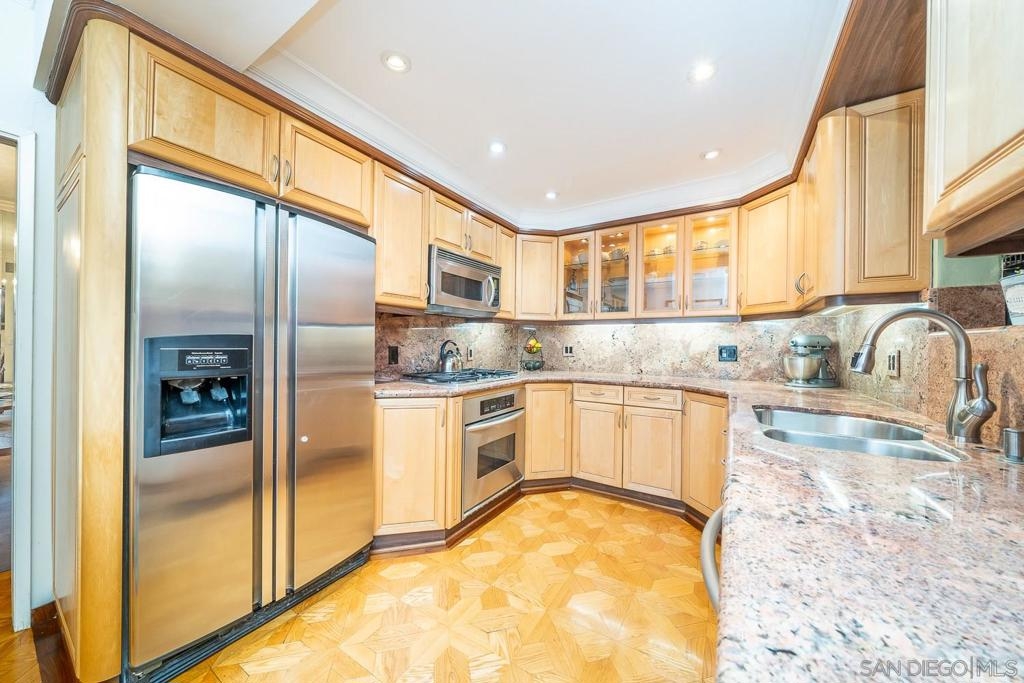 This upgraded end unit townhome boasts over 2,600 sqft of living area! Beautiful imported hardwood flooring throughout, 3 bedrooms 2 baths plus loft upstairs w/vaulted ceilings and optional 4th bedroom/office and full bath downstairs. Master suite has a gorgeous newly remodeled bath and a fabulous custom walk in closet. Kitchen is filled with natural light and features granite counters and stainless appliances while overlooking the pool and tennis court, making it feel like your own private resort! Main floor living area offers 9 foot ceilings, expansive living room with fireplace, formal dining room with stunning built-in bar and a gorgeous eat-in remodeled kitchen w/stainless steel appliances, beautiful maple cabinetry and granite counters. Charming patio off the living room nestled among the trees. This home has the best location in the complex! Largest floorplan end unit, furthest from the street and overlooking pool and tennis court. There is even a little secret garden for you to enjoy on the other side of the tennis court! Gated community located close to shopping and within walking distance to many establishments. Only a couple of miles from renowned Caballero Canyon and Braemar Country Club! Complex Features: ,,, Equipment: Dryer,Garage Door Opener, Washer Other Fees: 0 Sewer: Sewer Connected Topography: LL