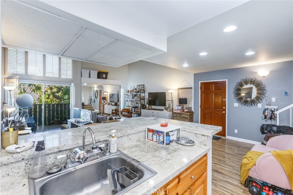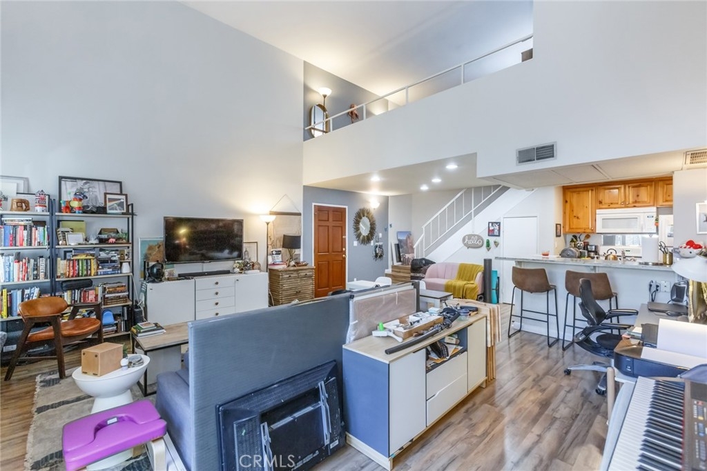 Welcome to this adorable one bedroom one bath condominium with nearly 800 square feet of open living space in the heart of Tarzana. As you walk in experience soaring ceilings, several windows filling the space with natural light, inviting paint selections and beautiful laminate flooring. The great room is spacious and features a large closet for extra storage, recessed lighting & gorgeous plantation shutters. The kitchen has been upgraded with granite counters, newer appliances and a large bar seating area. Upstairs you will find a loft style bedroom with a generously sized en-suite bath & additional walk-in closet. The grounds of the condominium are lush with tropical greenery and the pool area is the perfect place to lounge and BBQ. Close to shopping & easy access to freeways.