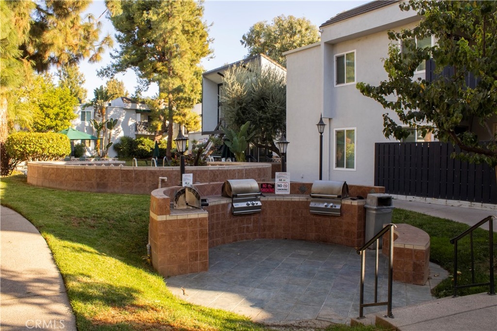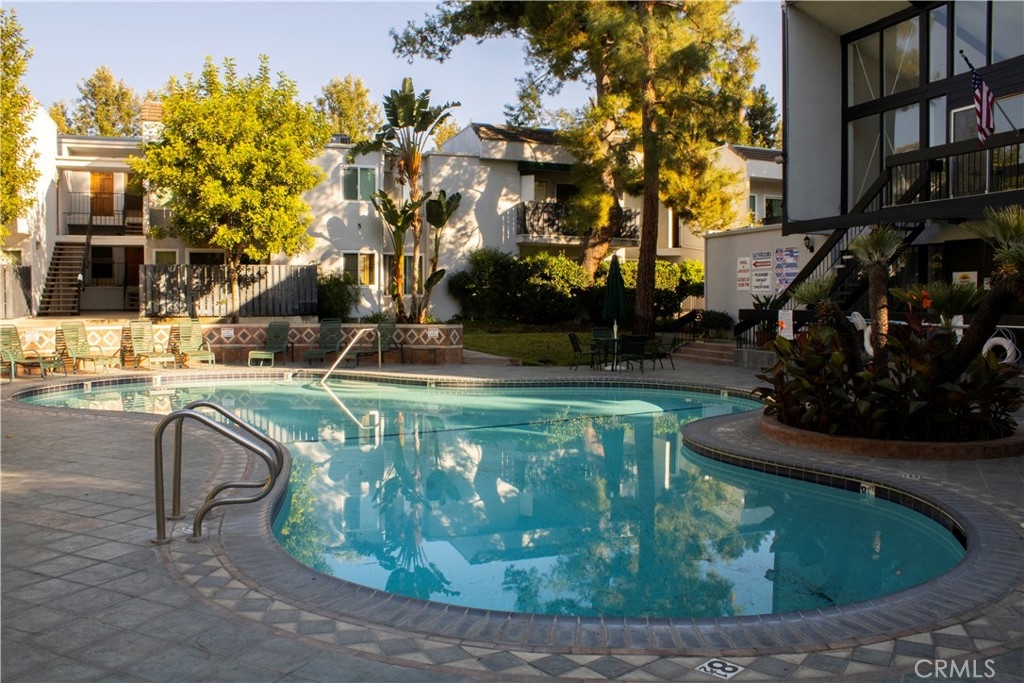 DO NOT MISS this unit in the popular resort-style GATED California Place complex in a very desirable area of Tarzana, freeway close and not far from Ventura Blvd, where shopping, dining and entertainment are in abundance. This darling first floor home is ideally located within the complex, and has an excellent floorplan, with pleasant relaxing space out on the private patio. The kitchen has gorgeous countertops, and NEW stainless steel refrigerator, dishwasher & microwave. The full bathroom has been updated, and the bedroom is quite ample, with even more storage in the hallway closet. There's a dedicated parking space, with a gated entrance. The community's many amenities, several renovated in March 2023, include a pool, spa, and huge BBQ area. A beautiful two story clubhouse has a billiard table upstairs, and a kitchen, sauna, & gym to enjoy. If you're looking for a quality Tarzana condo community at a wonderful price and reasonable HOA fees, here it is!