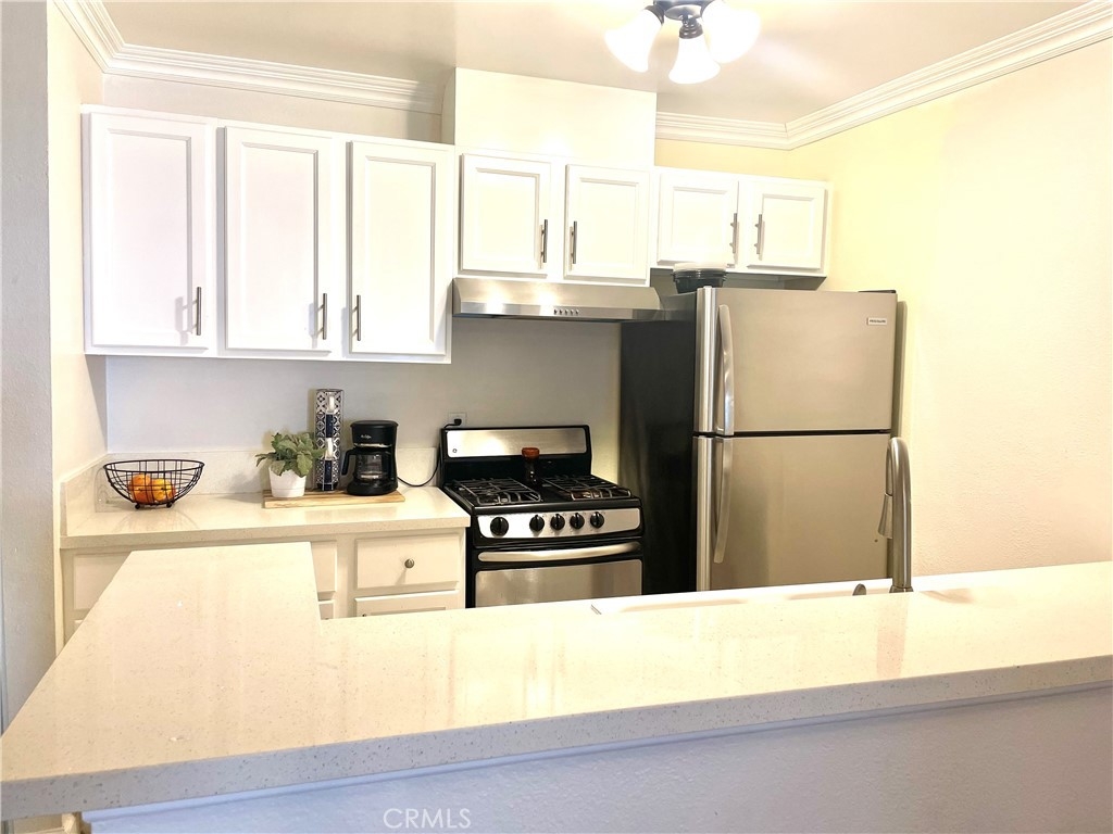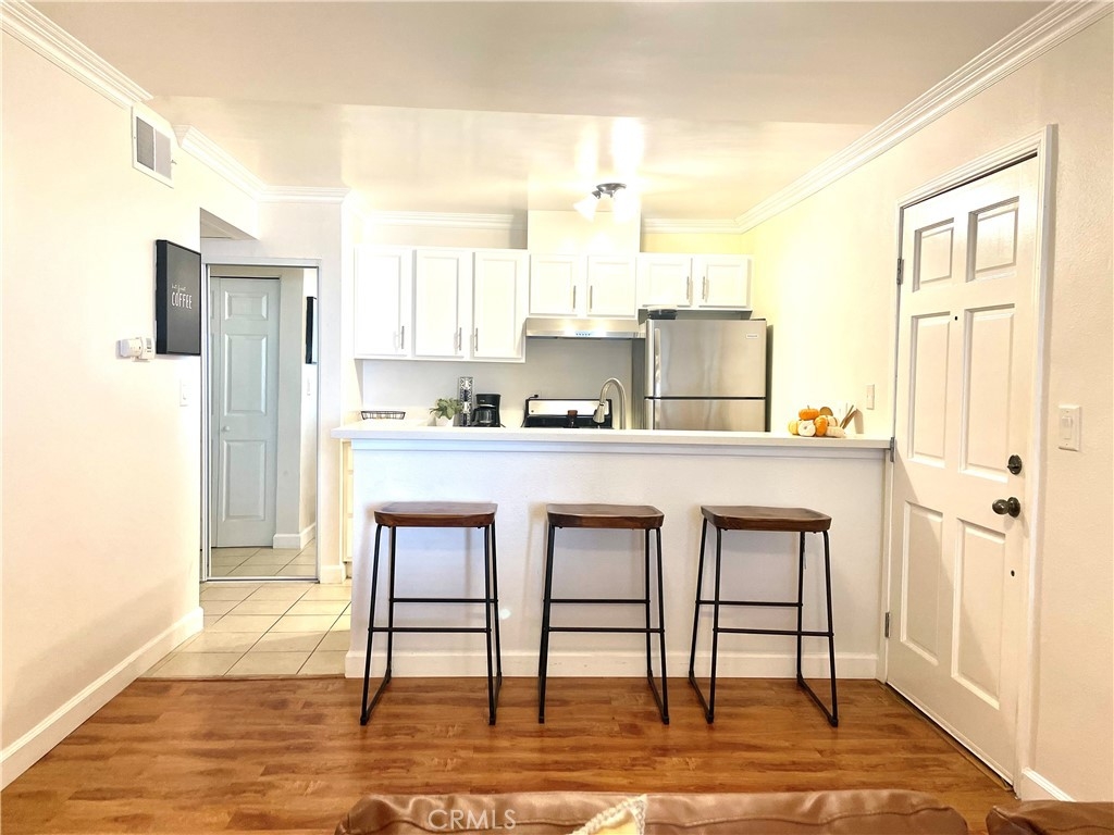 Updated studio in the well sought after area, in Tarzana. Smooth ceilings, crown moldings and wood flooring throughout. Kitchen and restroom have tile flooring. White quartz counter top and white cabinets in the kitchen. It boasts an enclosed patio in a gated complex with ponds, streams, pool, spa, BBQ, clubhouse, and gym. HOA dues include water, gas, earthquake insurance and grounds maintenance. Very well managed complex. The unit comes with one assigned parking spot #321. Close to the orange line, 101 & 405 FWY, markets, hiking and bicycle trails. Come make this your very own!