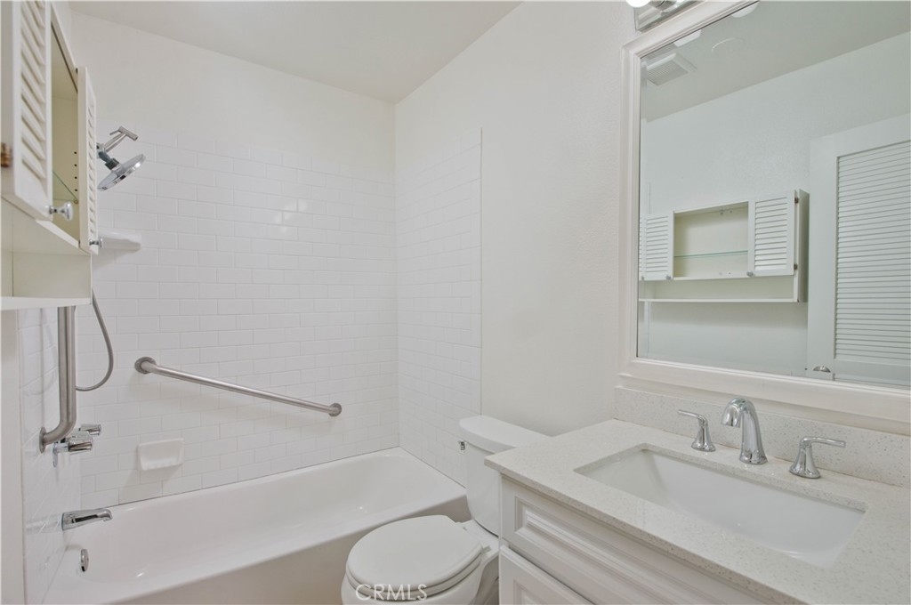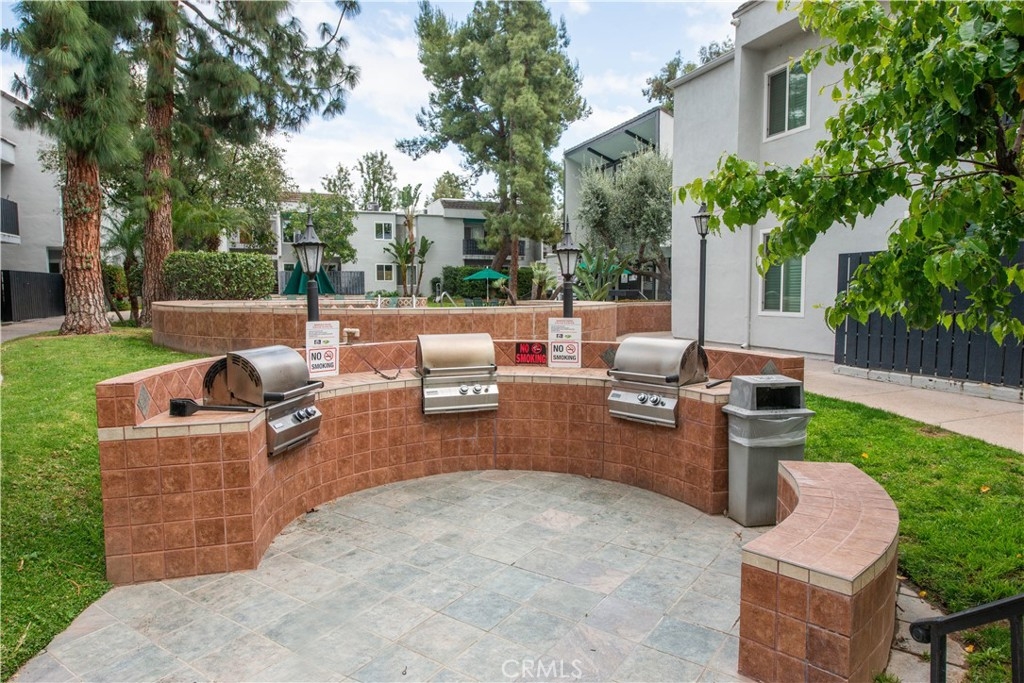 Experience the charm of this delightful first-level condo nestled within a meticulously maintained community in Tarzana. The spacious open floor plan is bathed in natural light, creating an inviting ambiance. Recently painted, this condo is turnkey-ready for its new occupants. The kitchen boasts a welcoming breakfast bar, while the remodeled bathroom features elegant white subway tile, a quartz countertop, and a generous-sized mirror. Rest peacefully in the private bedroom complete with a convenient closet system, complemented by an additional closet in the hallway for added storage. Positioned at the rear of the community with convenient side street access, this unit offers both privacy and accessibility. The HOA covers essential amenities such as water, trash, gas, and sewer, making for effortless living. Plus, with FHA eligibility and VA approval, securing financing for this home is a breeze. 1 uncovered parking space included.