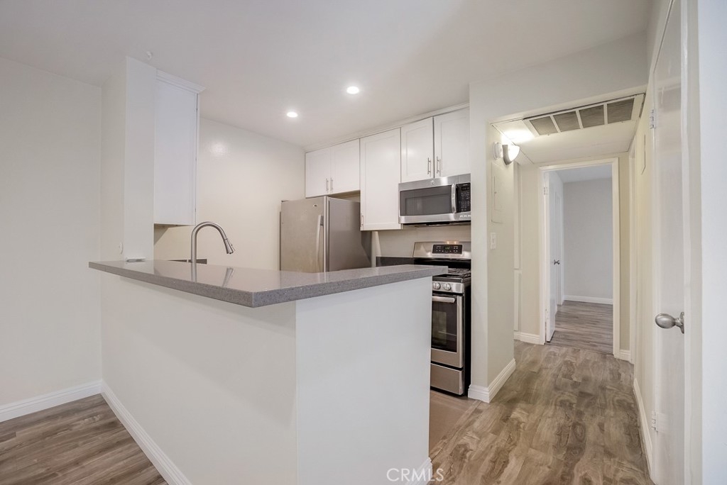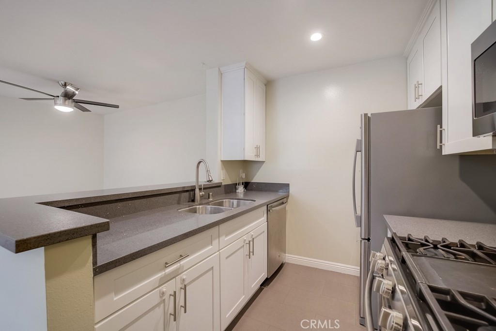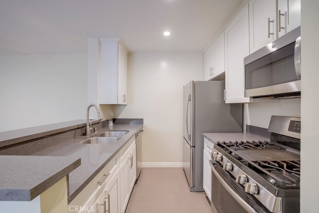 Newly updated 2 Bedroom, 1 1/2 Bath Condominium in a beautiful gated community with central location! Bright & Airy floor plan features: Open concept Island Kitchen with custom upgraded Cabinets w/soft touch drawers, Quartz Counters, Stainless appliances, 5-burner oven, built-in Microwave & Dishwasher. Master Bedroom has recessed lighting & Ceiling fan, 2 Closets/walking with customized shelving and closet with mirrored doors. Ample Storage with customized Organizers in Bedroom and Hallway. Master Bath has been updated w/new tub, new tile, new custom vanity & custom lighting, brushed Nickel hardware. Central Air Conditioning & Heating, Large Patio, Exterior Glass Panel Doors. Unit comes with 2 Parking spaces. Close to Ventura Blvd., public transportation such as Orange Line and 101 & 405 freeways.