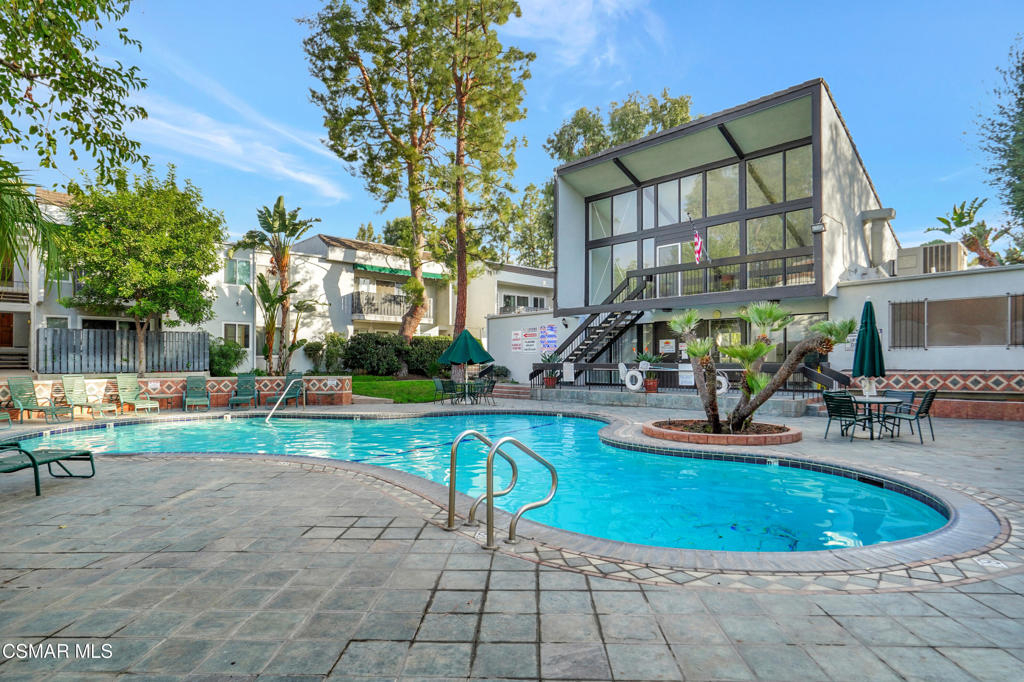 Nestled in the heart of Tarzana within the gated community of California Place, this charming 2-bedroom, 1-bathroom condo offers a perfect blend of comfort and convenience. Spanning 830 sq. ft., the open-concept dining and living area is designed to maximize space, creating a warm and inviting atmosphere.The spacious primary bedroom easily accommodates a king-size bed and features two closets, including a walk-in closet for added storage.The bathroom is designed with versatility in mind, offering a Jack-and-Jill layout. It includes two separate vanities--one accessible directly from the primary bedroom and the other from the hallway--both sharing a central toilet and shower, making it functional for both residents and guests.The kitchen is a highlight, featuring a modern gas stove with air-frying capabilities and a sleek, stainless steel refrigerator, both included in the sale. Step outside to your private balcony, complete with an additional storage closet. Unit 152 comes with two designated parking spaces, conveniently accessed through the community's electronic gates. The meticulously maintained grounds feature serene water features, a sparkling pool and spa, and a BBQ area perfect for outdoor enjoyment. The recently renovated clubhouse boasts a spacious gathering area with a kitchenette, a billiards area, an exercise room, and a sauna. This delightful condo offers everything you need to enjoy the best of Tarzana living in a secure, beautifully maintained community.