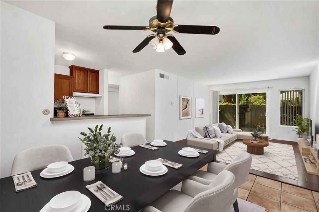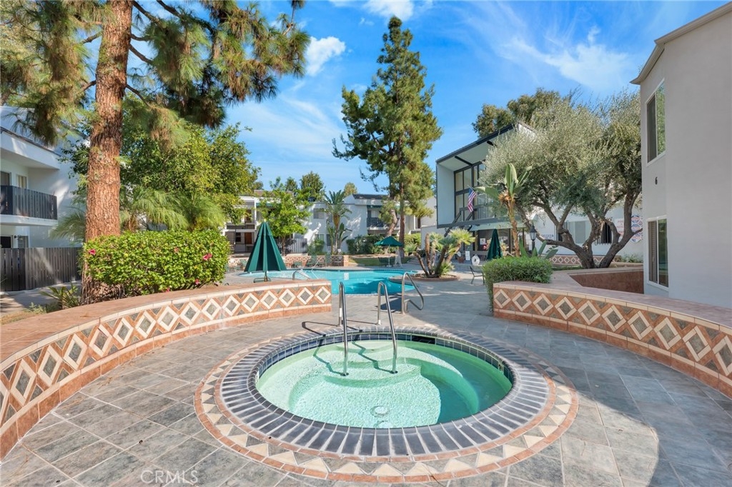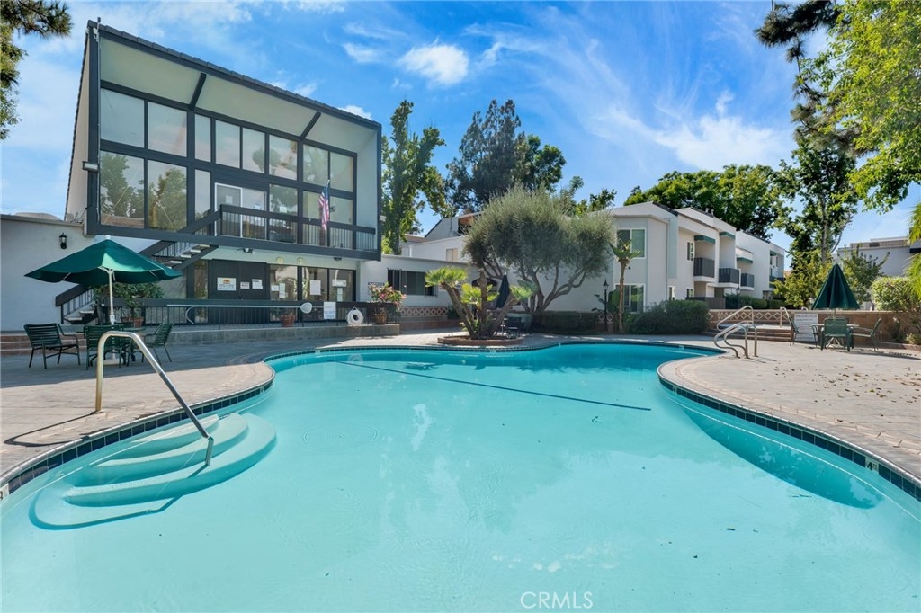 Welcome to 18645 Hatteras St., Unit 184, in the heart of Tarzana—where the best of Southern California’s easy lifestyle awaits at California Place. This resort-style gated community offers a sparkling pool and spa, outdoor BBQ and cooking area, recreation room, fitness center, and beautifully maintained grounds accented by peaceful creeks and streams. This updated lower-level interior unit features a desirable open floor plan and enhanced comfort with dual-pane windows—an upgrade not found in every home within the community. Enjoy smooth ceilings, tile flooring in the dining area, kitchen, bath, and hallways, and attractive wood laminate flooring in both the living room and bedroom. The generous dining area, complete with a ceiling fan, flows seamlessly into the kitchen, showcasing quartz countertops, a newer dishwasher, and a convenient breakfast bar for casual dining. The spacious living room opens through a sliding glass door to a large private patio—ideal for relaxing or enjoying meals outdoors. The full bathroom has been tastefully refreshed with an updated vanity, countertop, and tiled tub. Storage is plentiful with a large hall closet and a mirrored wardrobe closet in the bedroom. HOA dues cover water, trash, gas, insurance, and maintenance of the lush grounds and resort-style amenities—making for truly low-maintenance living. With no stairs to navigate, the convenient layout provides comfortable, accessible living all on one level. Whether you're a first-time buyer, downsizing, or looking for a low-maintenance investment, this charming residence delivers both comfort and convenience in a serene setting. Ideally located just minutes from Ventura Boulevard and The Village in Woodland Hills, offering abundant shopping, dining, and entertainment, along with easy freeway access. This is a must-see opportunity to enjoy comfort, convenience, and community all in one place.