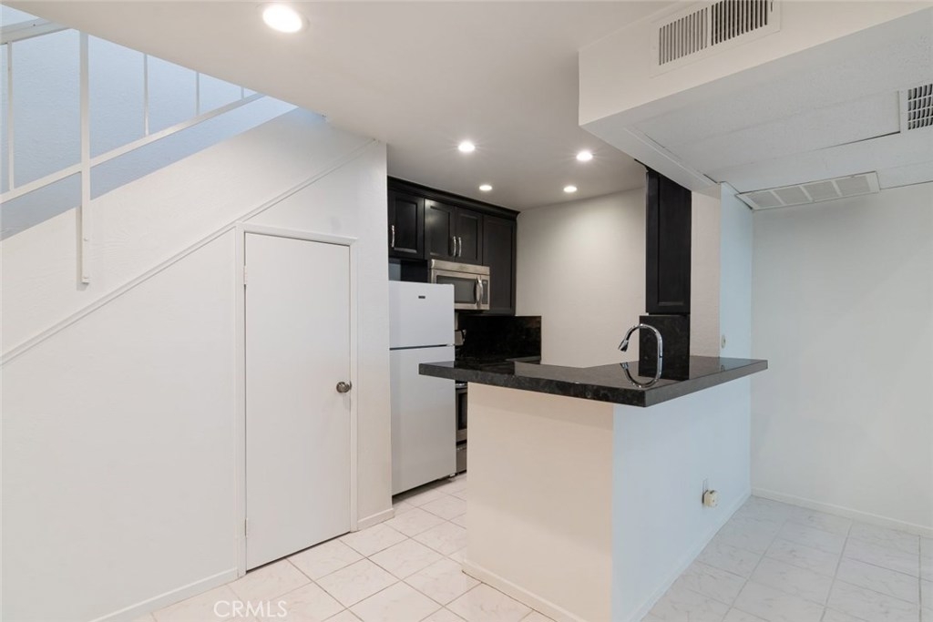 Spacious 1 bedroom, 1 bathroom, condominium for sale in the desirable California Place private complex in Tarzana! Behold a beautiful unit with vaulted ceilings and recessed lighting throughout the open floorplan of the living room, dining room, and kitchen. The dining room and adjoining living room include a private terrace accessible from sliding glass doors, and a mid-century modern fireplace to create a relaxing atmosphere perfect for entertaining. The kitchen is enhanced by glossy granite counters with an L-shaped breakfast bar, dark cabinetry, a large pantry, and built-in appliances to provide you with everything you need for all your culinary creations to flourish. Upstairs we find a pleasing loft style bedroom overlooking the lovely first-floor below, complete with a great walk-in closet and adjustable organization system. The bathroom is crisp and functional with storage space, a built-in medicine cabinet, and a shower/tub combination. This complex provides lovely stone and greenery accents throughout, guest parking, a community mailroom, open barbeque area, a relaxing spa, and glittering pool. Residing just above the bustling Ventura Blvd, this home is close to the action but not too close! It is near Whole Foods, Gelson’s Market, the Tarzana Shopping Square, local restaurants, cafes, and shops, plus easy access to the 101 Freeway!