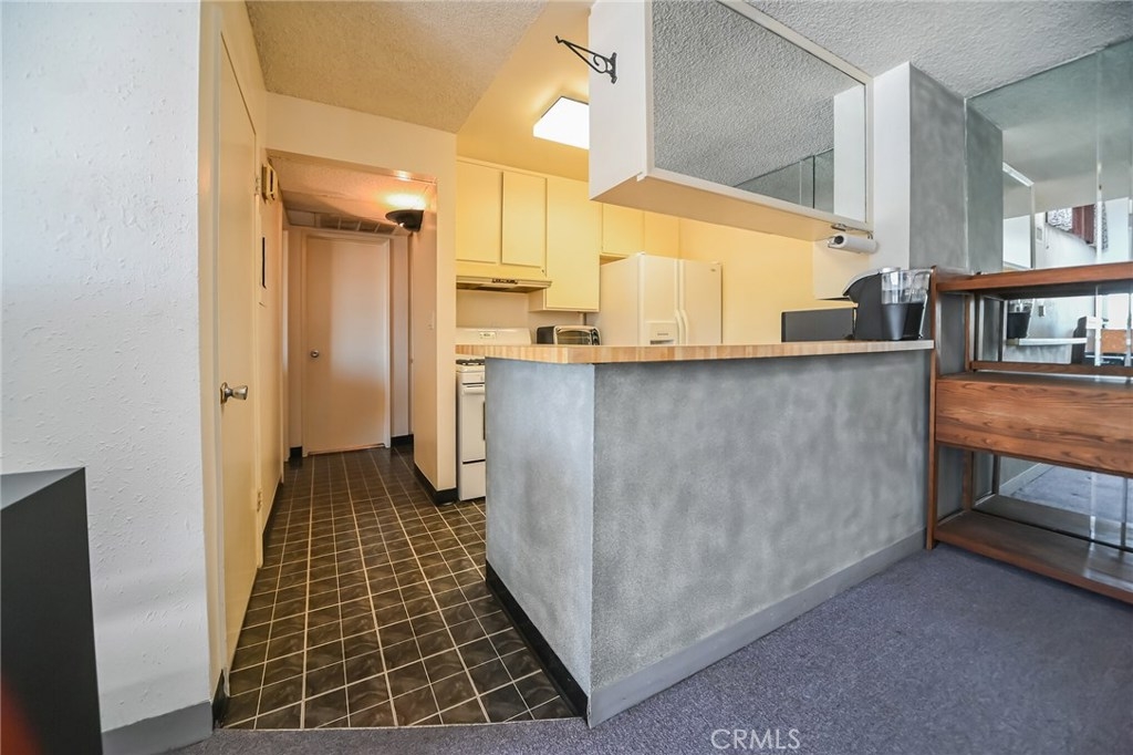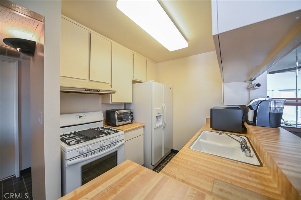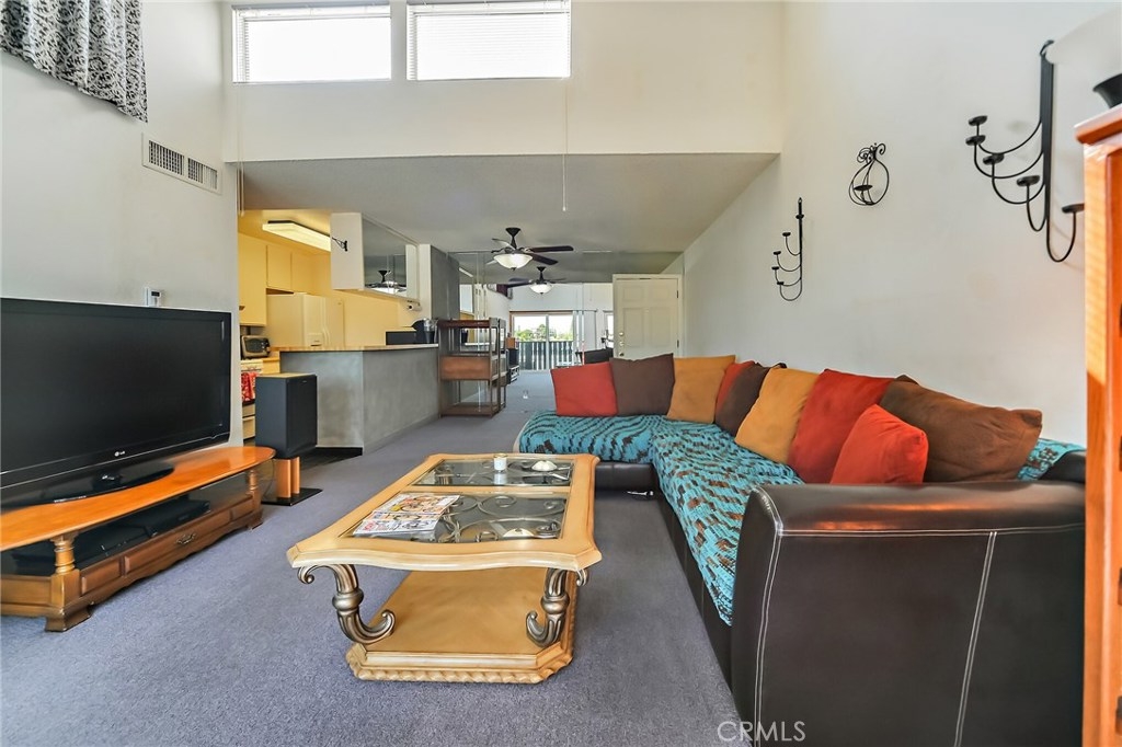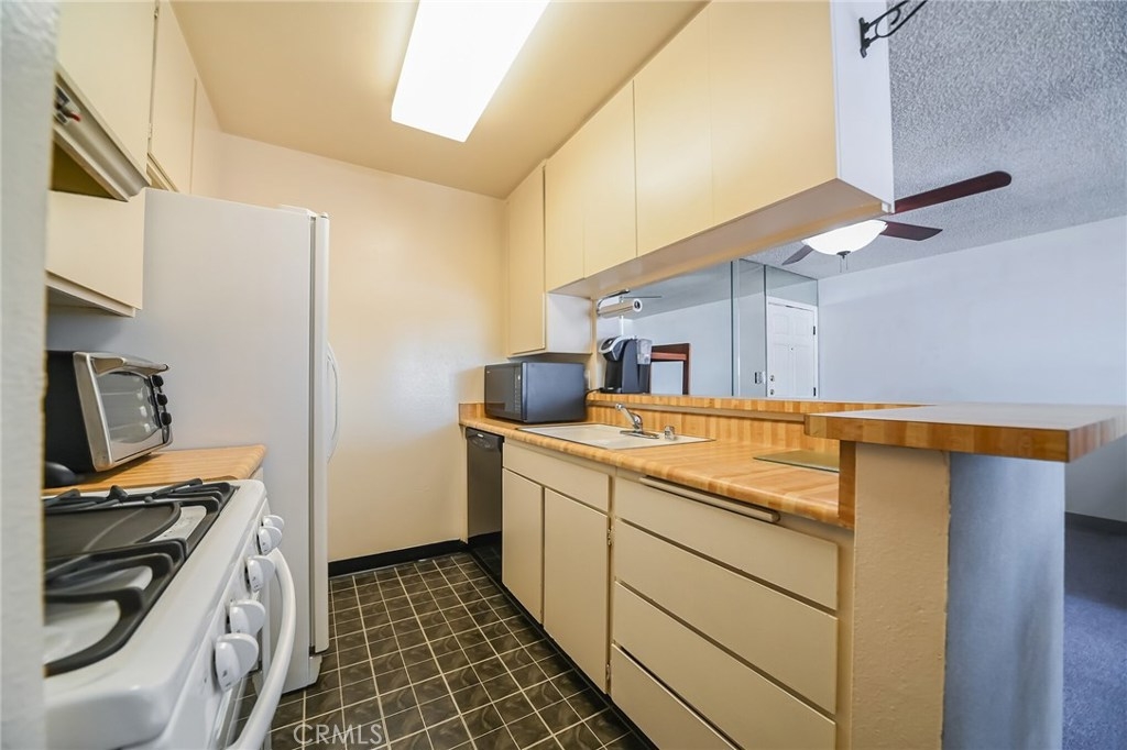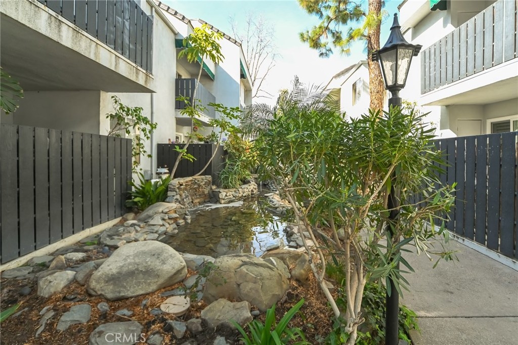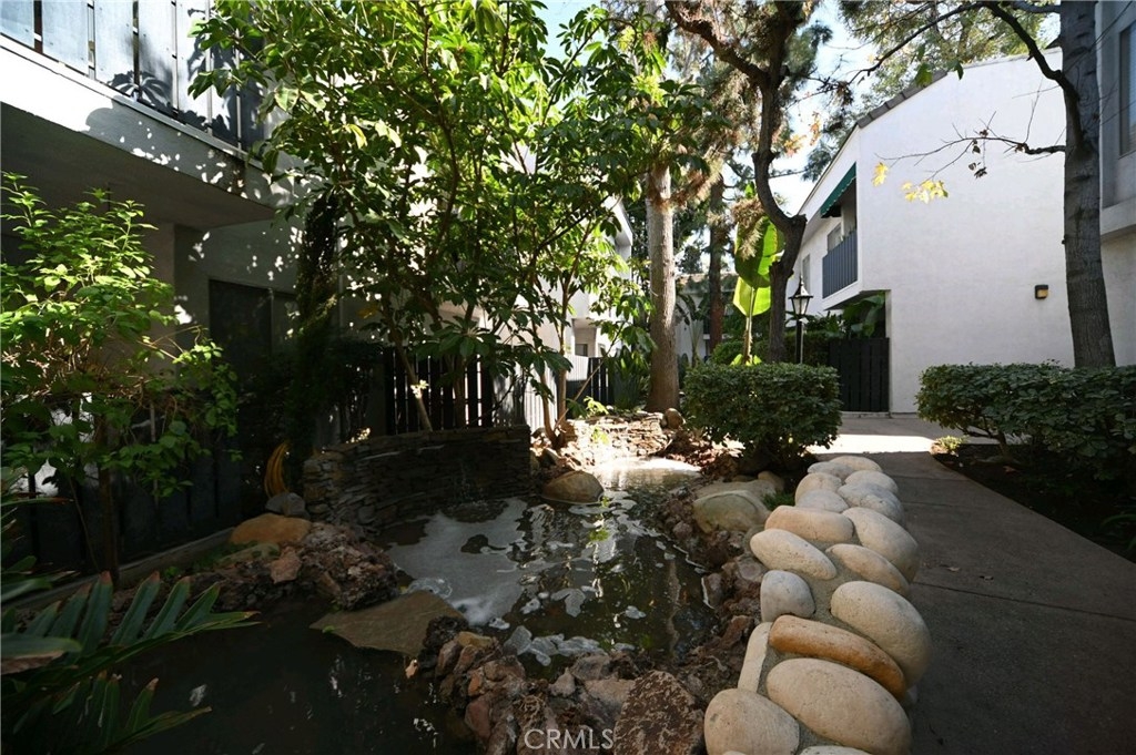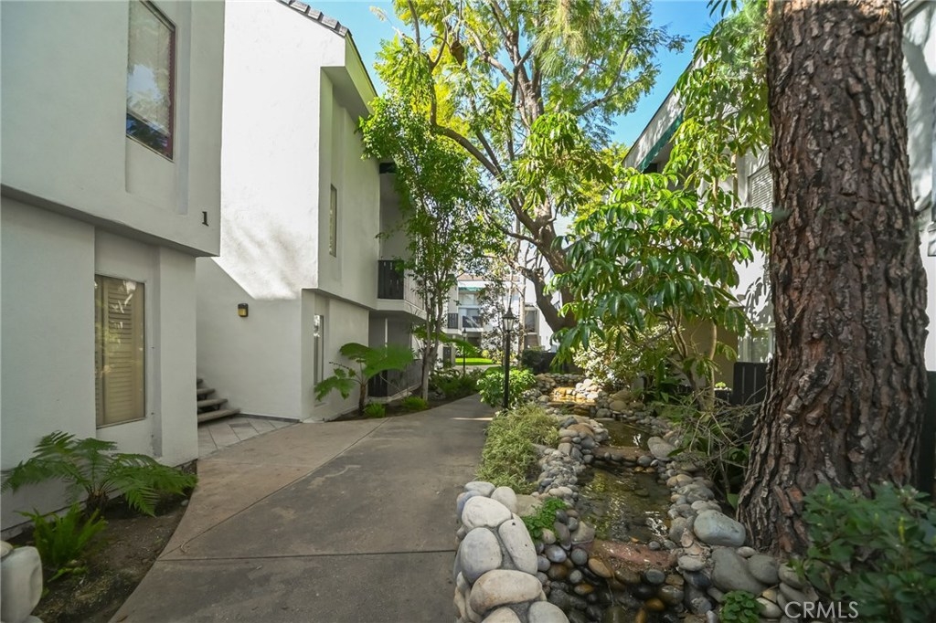 This unit boasts a 17 ft vaulted ceiling in the living room and has an amazing amount of natural light. The master bedrooms walk in closet is well designed, with built in cabinets and there is also an undisclosed 400 sq ft storage area/attic space above the second bedroom. Milgard double pane Glass Windows/Sliding glass door to patio insulates for the perfect indoor temperature. This unit is perfectly located in back of complex, not much noise or visibility from within the complex for privacy. The complex is convenient to many shops along Ventura. HOA amenities include; Water, Gas, Trash, and tandem 2 parking spots. The complex includes access to; Pool, Jacuzzi, Billiards, Sauna, a Small Gym, and Laundry Room with 14 Washers and 14 Dryers. Gated Complex has well maintained landscaping with several large nature inspired water fountains throughout. Property to be sold in As-Is condition.