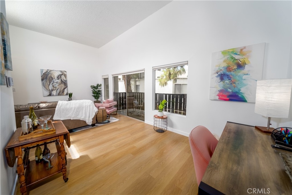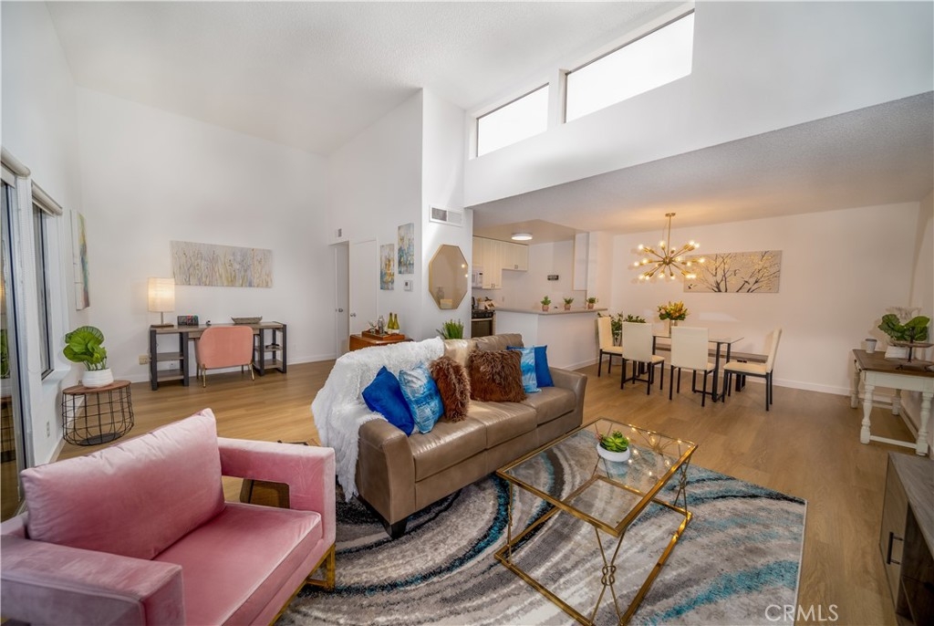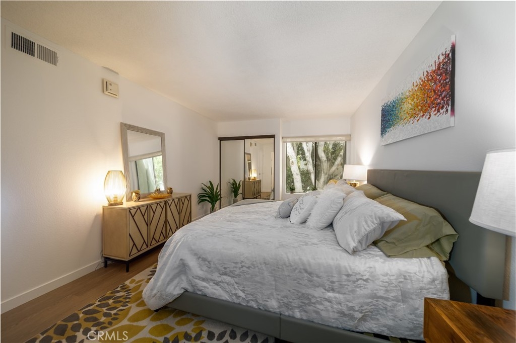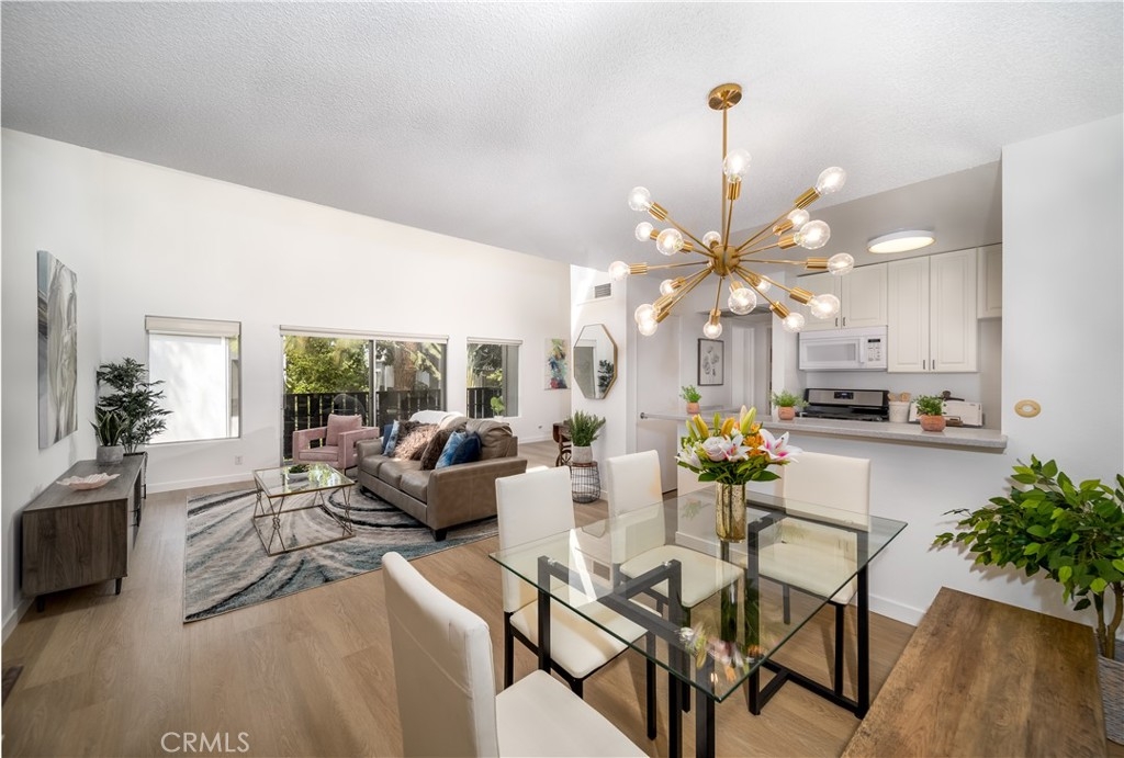 Spacious and Beautiful 1 bedroom condo, located in the resort-like gated community of California Place in Tarzana. This unit boasts brand new stylish LVT flooring throughout, gas range, dishwasher, and designer LED lighting. Freshly painted throughout, light and bright living area has amazing tall ceilings and a view of the mature, manicured landscaped grounds. Enjoy the outdoors on your private balcony! Amenities of the community include sparkling pool, spa, outdoor cooking center / BBQ, recreation room, gym and laundry room. Tandem 2 car parking is conveniently located near the unit.