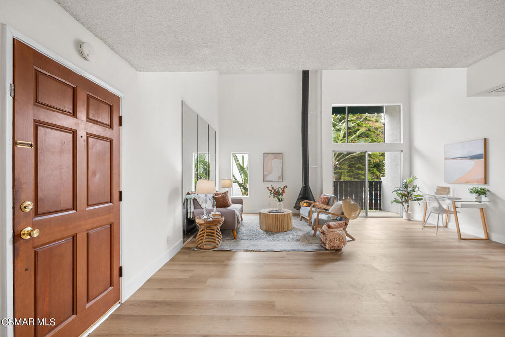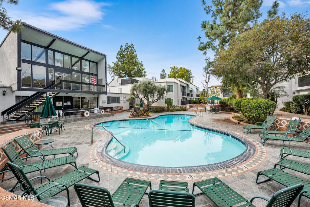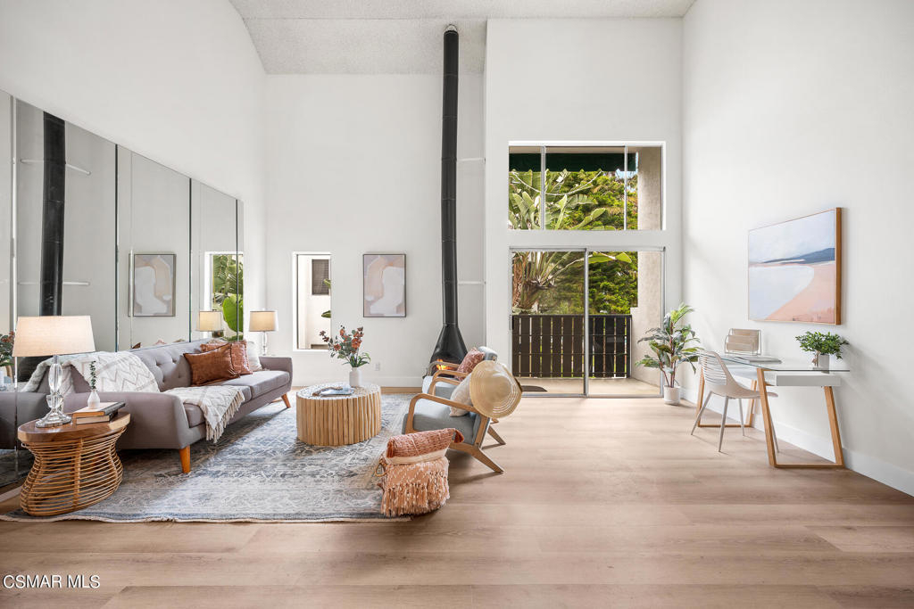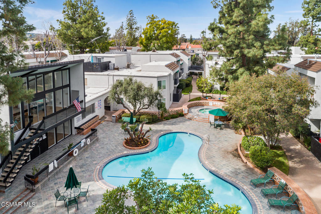 Amazing Value for this light and bright Tarzana condo! This upper level, penthouse unit, offers an open layout with 18' ceilings and large windows, bathing it with natural light. The bedroom and bathroom are upstairs and overlook the living room and out to the pool area. Brand new vinyl floors, baseboards, dining room light fixture and fresh paint allow for immediate move in, while allowing the new owner to create their own vision for future improvements. The well maintained, gated complex, offers beautifully landscaped grounds with pool, spa, bbq, and clubhouse with pool table, kitchen and common laundry room. Don't miss this one.