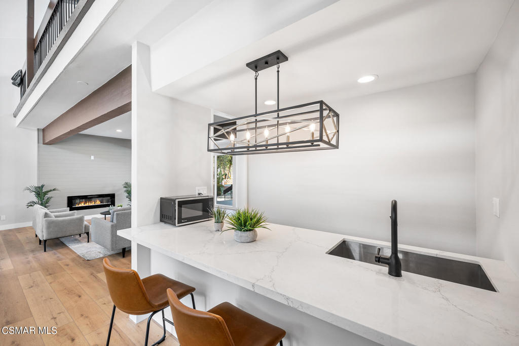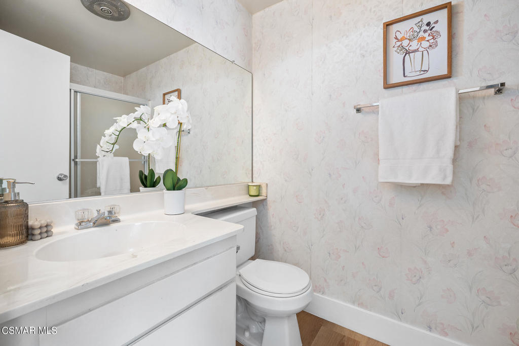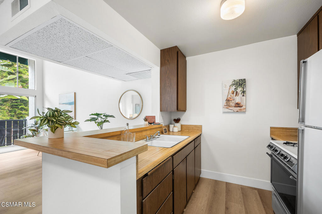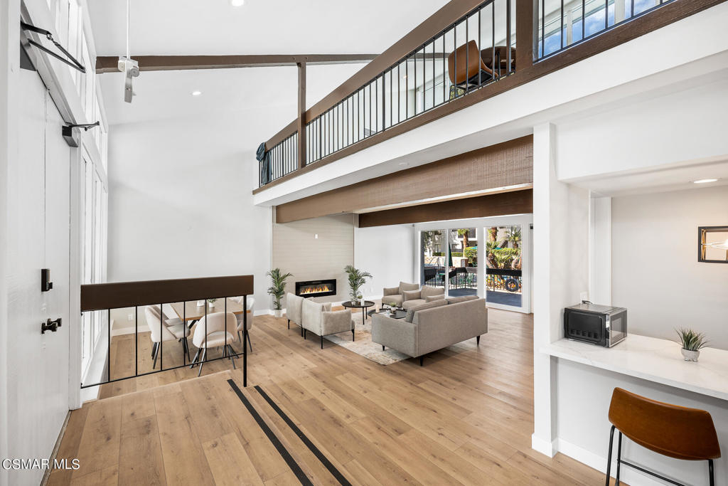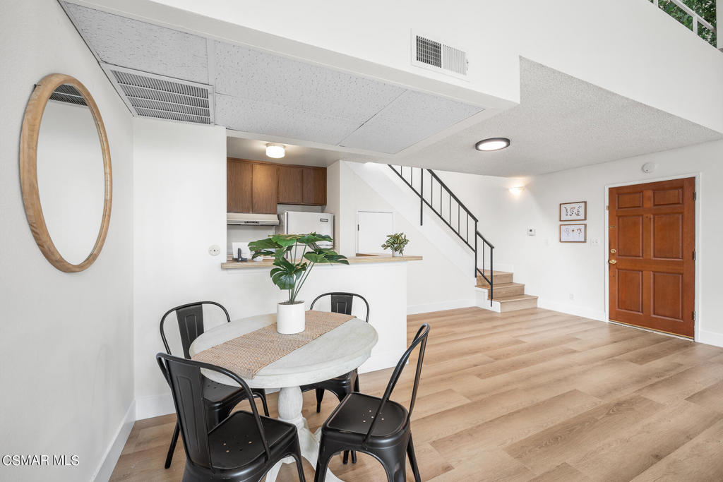 Amazing Value for this light and bright Tarzana condo! This upper level, penthouse unit, offers an open layout with 18' ceilings and large windows, bathing it with natural light. The bedroom and bathroom are upstairs and overlook the living room and out to the pool area. Brand new vinyl floors, baseboards, dining room light fixture and fresh paint allow for immediate move in, while allowing the new owner to create their own vision for future improvements. The well maintained, gated complex, offers beautifully landscaped grounds with pool, spa, bbq, and clubhouse with pool table, kitchen and common laundry room. Don't miss this one.