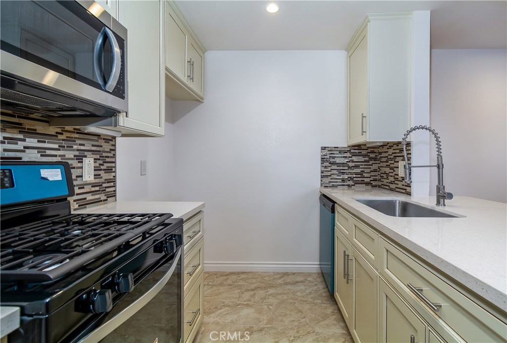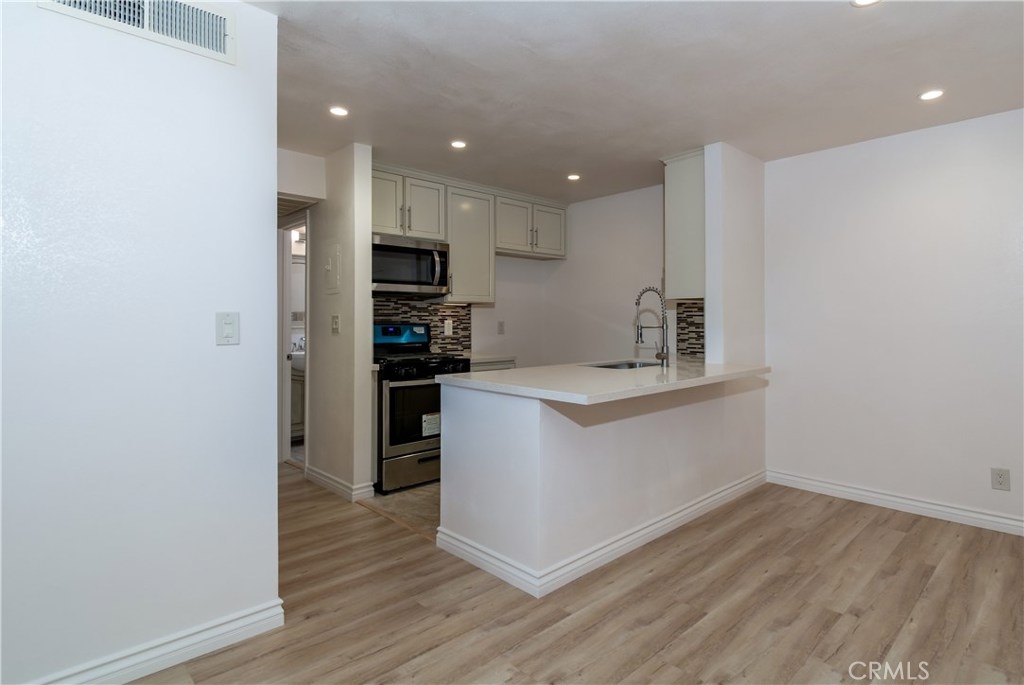 California Place - First-floor beautifully remodeled one bedroom with smooth ceilings, recessed lights, new floors and windows throughout. Has a completely remodeled kitchen with top of the line cabinets, designer backsplash and faucet, double stainless steel sink and stainless steel appliances. The full bathroom also has been completely remodeled with top of the line tile, new tub and glass doors. All the doors, locks, switches and plugs have been upgraded throughout the unit and new Nest thermostat has been installed. This unit boasts a large enclosed patio in a great location within a gated complex with ponds, streams, pool, spa, BBQ, clubhouse, sauna and gym. HOA dues include water, gas, earthquake insurance and grounds maintenance. Very well managed complex. The unit comes with one assigned parking spot #335. Close to the orange line, 101 & 405 FWY, markets, hospital and all that Ventura Blvd has to offer