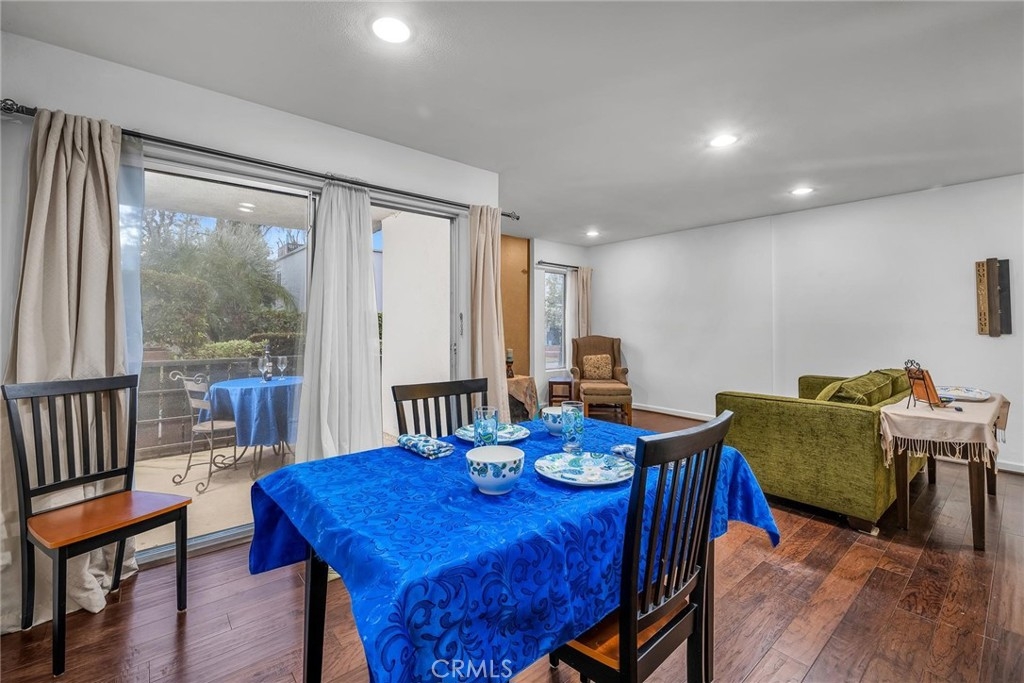 Stylish Studio Condo – A Smart Alternative to Renting! Why rent when you can own this bright and inviting studio condo and start building equity! Step into an open, light-filled living room featuring gorgeous, engineered wood flooring, smooth ceilings, and recessed lighting—perfect for modern living. The versatile layout includes a cleverly designed Murphy bed disguised as a built-in bookshelf, seamlessly combining living and sleeping areas. The kitchen is a cook’s delight with granite countertops, stainless steel appliances, and rich cabinetry. A cozy desk nook and a spacious hall closet provide ample workspace and storage. The bathroom boasts a large vanity and a convenient tub/shower combo. Enjoy your private patio with serene views of the beautifully maintained grounds and sparkling pool. Additional highlights include all appliances, furnishings, central air conditioning, and two assigned tandem parking spaces! The community offers resort-style amenities, including a pool, spa, gymnasium, sauna, clubhouse with a kitchen and pool table, outdoor bar-be-cuing, tranquil water features, and lush landscaping. Low HOA dues of $395 include all the amenities plus Earthquake Insurance, Gas, Water, Sewer, and Trash! Conveniently located near shopping, entertainment, places of worship, public transportation, and more, this condo delivers an unbeatable lifestyle. Don’t miss this opportunity—schedule your showing today. This gem won’t last long!
