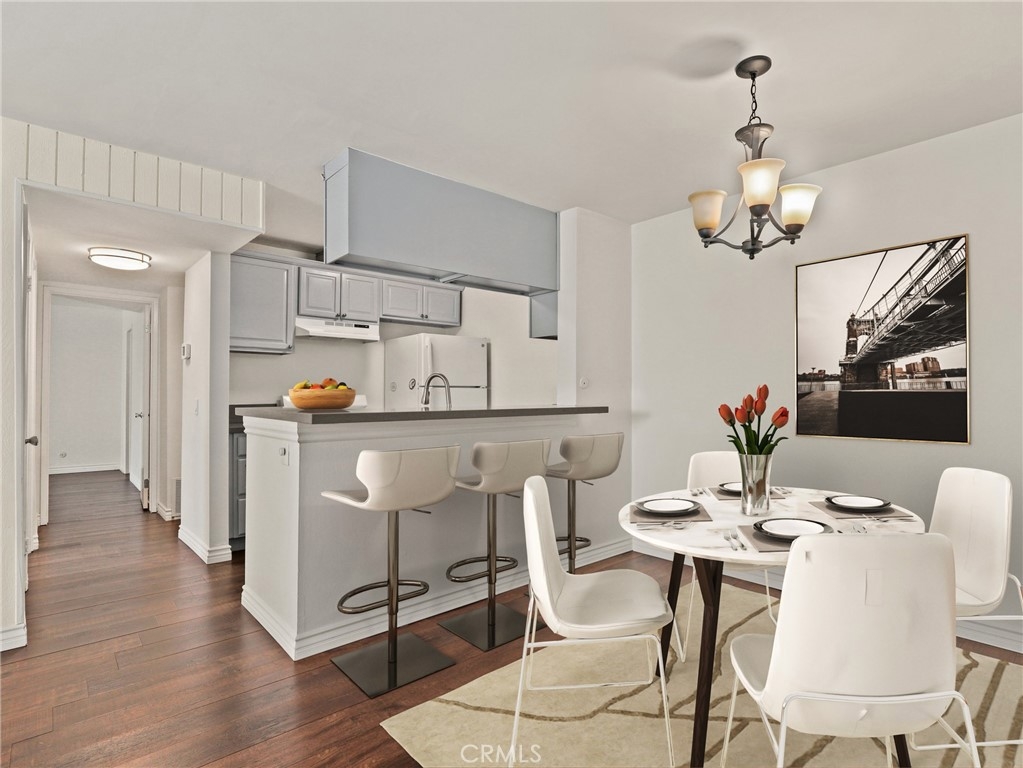 This is a beautiful first-floor unit with no stairs. There is newer vinyl plank flooring throughout the unit. The kitchen has quartz countertops with a bar that is open to the living and dining areas. The energy-efficient LED lighting and a smart thermostat will help to keep utility bills low. California Village Condominiums is a gated complex with lush landscaping, a large gated pool, and a spa plus BBQ area. There is laundry on-site. The HOA includes water and trash and is located close to Ventura Blvd., Whole Foods, Trader Joe's, and parks. There are 2 parking spots assigned to this unit.