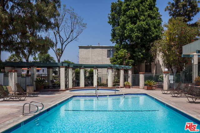 Four bedrooms in Prime Tarzana! Ground Floor, Single Level Condo in "Highly Sought After California Village!" No Steps! Best Location in complex, very close from the main entry gate while still in quiet location, next to the sparkling pool, spa, club house and laundry facilities. Feels like your own private home. Master bedroom with its own bathroom, plantation shutters at every window, recessed lighting in every room, and crown moldings throughout, smooth ceilings. Lovely maple kitchen cabinets, marble counters and top of the line appliances. Both bathrooms are completely remodeled. Huge entertainer's patio with a storage. New a/c, 2 tandem carport parking spaces not far from the unit.