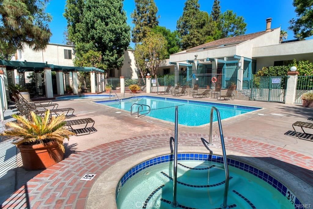 Gorgeous upgraded corner unit with views of lush grounds, location, location , location , truly the best location in one of the most desirable communities in Tarzana, California Village, excellent location in the building near the pool, spa and laundry area, yet privately nestled sitting pretty on top with views of lush grounds , first floor corner unit, but sitting on top totally private, yet open , perfect setting with extra large patio with beautiful views of the lush grounds and greenery Security gated building, pool, spa, kids pool, rec room, 2 parking spaces tandem, central air, close to all, the 101 freeway,walking distance to all, orange line, Ventura Blvd, public transportation, groceries, shops,gelsons, vons, , all major shopping centers, groceries, Tarzana Hospital, & medical facilities, Hoa pays for water, trash, gardening, sewer, insurance for exterior structure,