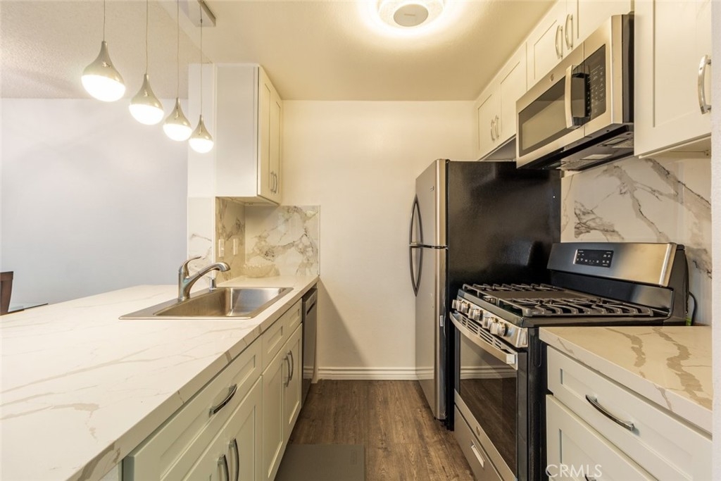Prime Tarzana location! Newly Remodeled. Make new lasting memories at California Village, located in Tarzana. This 2 bedroom and 1 bathroom condo features an open floorplan with newly painted walls, new flooring, soaring high ceilings, lots of storage space and more! There is a formal living room with a private balcony that is just waiting for company. Enjoy cooking in a Brand New kitchen with sleek countertops and NEW stainless steel appliances. There is a dining area and a breakfast bar where you can add bar stools. Bedrooms are bright and spacious. Located on the second floor. This is a single story condo with 855-SqFt of living space. NEST Thermostat. Less than 5-miles from Lake Balboa, Balboa Golf Course, popular restaurants, schools, supermarkets, gas stations, banks and more!