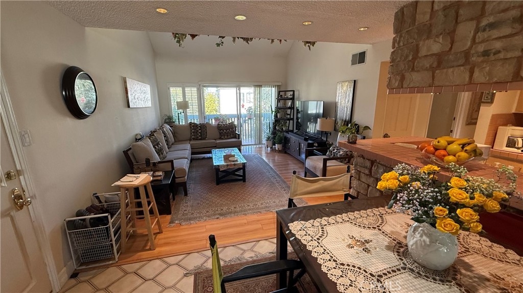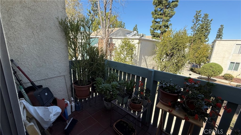 A beautiful 2 bedroom one bath, end unit, new HVAC, and dishwasher, custom stone work in the kitchen, master bedroom has a walk in closet, designer and beautiful bathroom with sky light fan and heater, a large balcony with view of courtyard unobstructed by any other units, feel a serene of peace and quiet, 2 parking spaces, move in condition and mirrored living room.