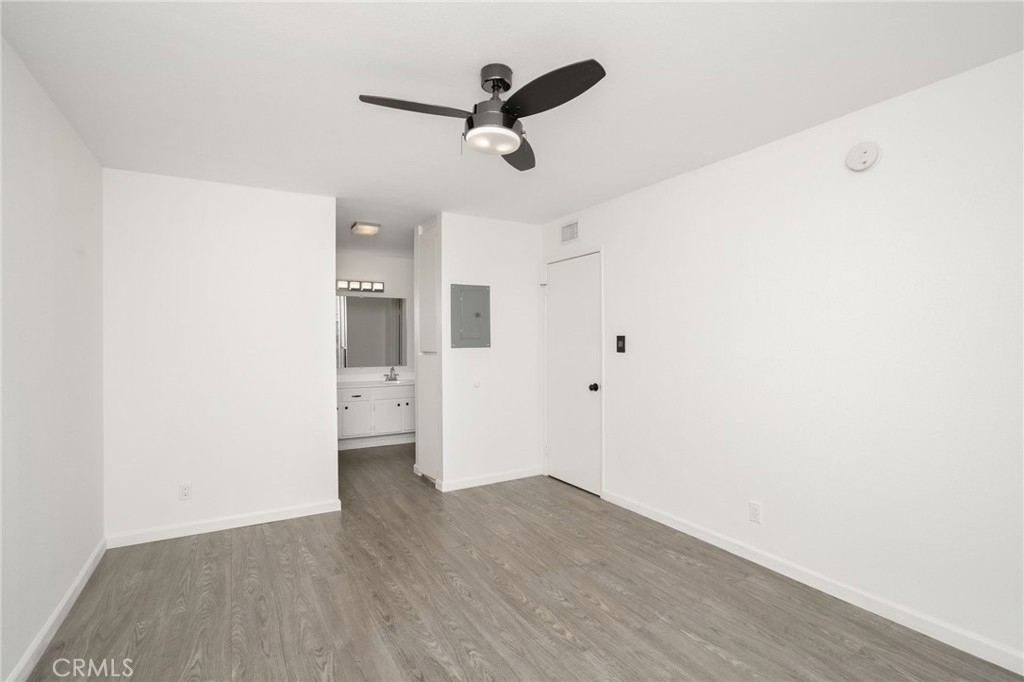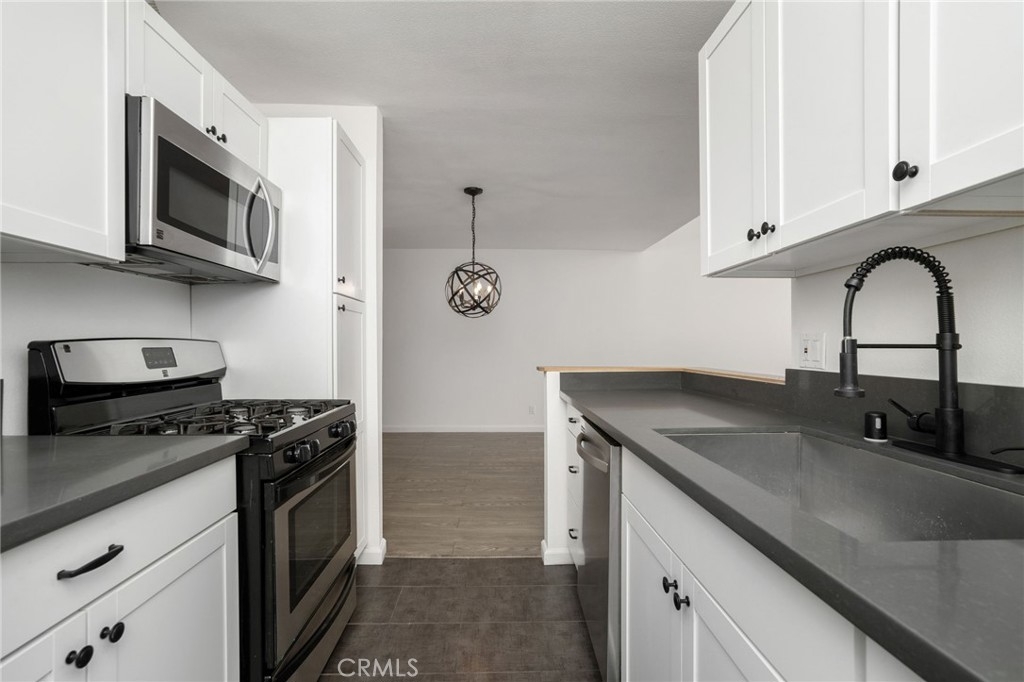 Welcome to this sun filled, move in ready, 2 bed/2 bath top floor condo in an amazing location! Step into this south facing remodeled unit with a flood of natural light. Once inside, you will see the high ceilings and onto the balcony with additional storage. The trendy kitchen includes dark quartz countertops, stainless steel appliances, and recess lighting. Each of the bedrooms have ceiling fans to keep you cool and the AC unit is 2 years old. The primary suite boasts a walk in closet and a private bathroom. The complex includes a pool and spa, club house, and on site laundry. There are two tandem parking spots. The best part is the walking distance to Ventura Blvd, with great shops and restaurants from grocery stores, Brazilian Steakhouse, and Wanderlust Ice Cream. Just around the corner is the Metro Link Orange Line and more.