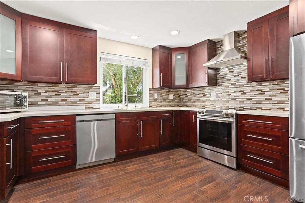 This 2 floor, resort-style, end-unit Townhouse is now available for sale in a desirable location of Tarzana. This unit is in the quiet and friendly neighborhood of Casa Caballero which the property sits at the end of a tree lined cul-de-sac. The spacious 3-bedroom, 2.5 bathroom unit features high ceilings, a private entrance that opens up to a large and welcoming family room which also features an inviting and cozy fireplace. Also, upon entrance of the 1st floor, you’ll quickly notice upgraded features such as, recessed lights, hardwood floors, sliding doors, shutters, smooth ceilings, a spacious dining room area in the kitchen with modern appliances, and a very private patio area. On the 2nd floor you’ll find 2 nice sized bedrooms, one being the master suite with an en-suite bathroom, large closet, private balcony with a nice foliage view, and a fireplace. The pool and recreation center are also conveniently located near this unit. HOA includes Pool/Spa, Pest Control, Clubhouse, EQ Insurance, Trash, Water. This complex is also located minutes from the 101 freeway, and a great number of Tarzana and Encino shops, restaurants, and entertainment.
