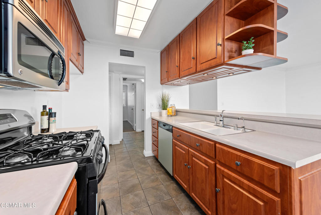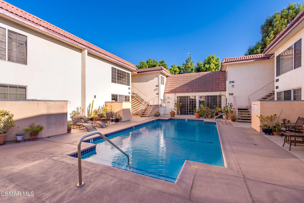Step into comfort and convenience with this charming 2-bedroom, 2-bathroom condo in Tarzana, California. Nestled in a small, secure complex, you'll find peace of mind with a locked front entrance and gated parking featuring two tandem spaces just for you.Imagine starting your day in a spacious open-concept living room, bathed in natural light from the sliding door that leads to your private balcony. It's the perfect spot for morning coffee or evening cocktails. The updated kitchen, complete with wood cabinets and sleek stainless steel appliances, is ready for your culinary adventures, while the adjacent dining area is perfect for hosting friends. The primary bedroom boasts a large closet and an en-suite bathroom with a vanity and a separate shower room. The second bedroom is equally inviting, with a generous closet and a nearby hall bathroom, perfect for guests or family. Located on the first floor, this condo offers easy access to all the amenities with a refreshing community pool and two outdoor grills, ideal for weekend barbecues and making memories with friends and neighbors. Living here means you're just minutes away from the freeway, adding a layer of convenience to your daily commute or weekend getaways. Also, close proximity to shopping and dining. This condo isn't just a place to live--it's a place to thrive. Make it yours and embrace a lifestyle of comfort, convenience, and community.