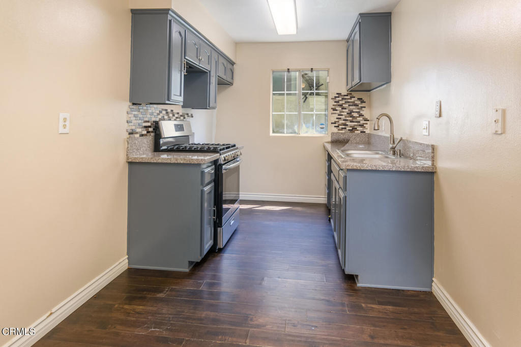 Located by the pool, on bottom floor single level home with interior laundry and patio. Wood floors, remodeled kitchen. Large bedroom closet. Great floorplan with under ground two space tandem parking.
