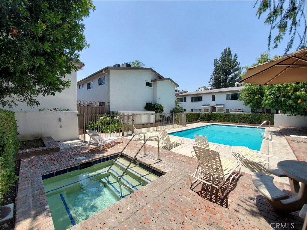 BACK ON MARKET due to buyer's inability to get a loan. Beautiful modern Tarzana townhouse in a nicely maintained complex with plenty of amenities such as pools, hot tubs, playgrounds and tennis court. Entire complex was rebuilt in 1995. Tiled floors on the first level with beautifully remodeled kitchen with lots of cabinet space. This unit is one of the only units in the entire complex with no shared walls and two private patios. Carpeting in bedrooms with two outdoor patios with plants, fruit trees, etc. One bedroom and guest bathroom downstairs and three bedrooms with two bathrooms upstairs. Lots of light. 3 parking spaces available immediately adjacent to unit with one guest parking space in the common parking lot in the back of the building. Gated entry with full security guard service on premises. Seller is a California real estate licensee and is very motivated! Subject to the cancellation of existing escrow.