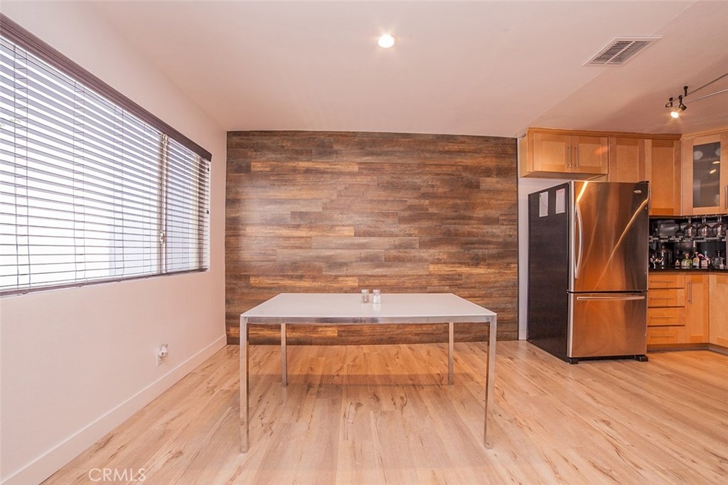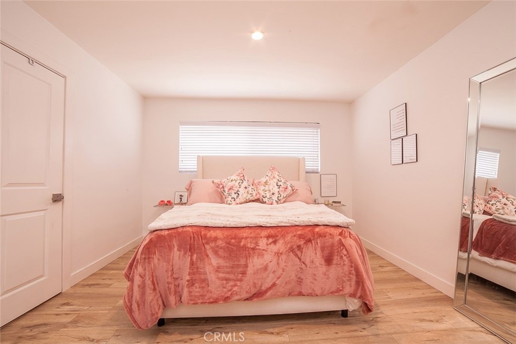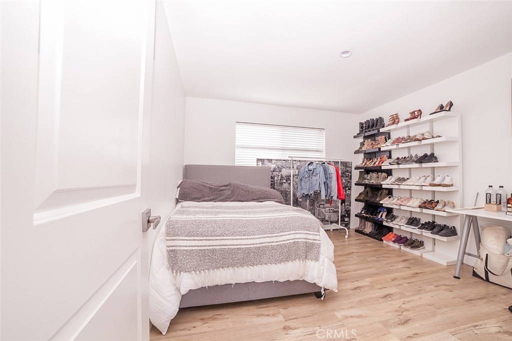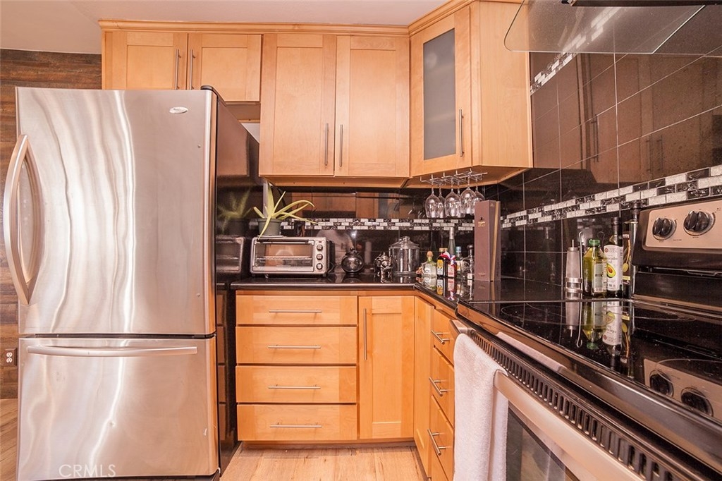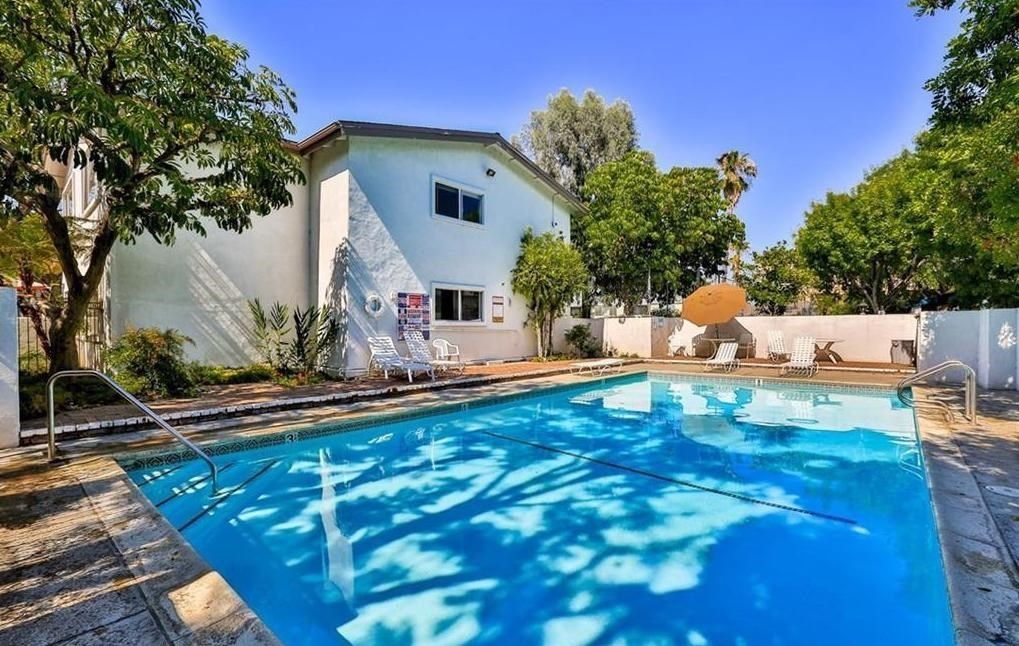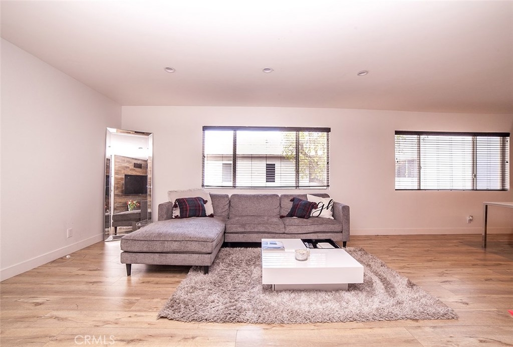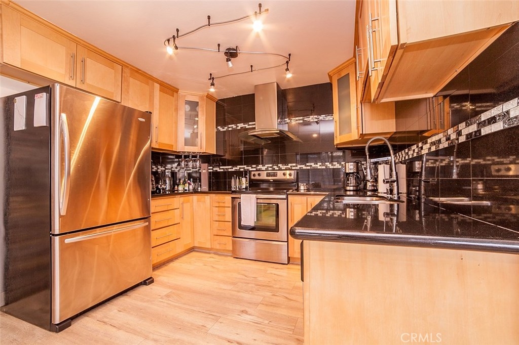 Gorgeous Collinwood Condominium top floor unit...upgraded throughout. WOW!! Open floor plan. Spacious living room with dining area and fabulous gourmet kitchen. Kitchen features black speckled granite counters and granite back splash, dual stainless sinks, stainless appliances with stainless vent hood, designer cabinetry, and wide plank laminate flooring. Gorgeous flooring throughout and upgraded bathrooms. A/C and heat. There is also the bonus of an over sized utility closet which is great for storage. Parking is one covered space and one open air as well. Laundry is not in the unit and in common room. The low monthly HOA dues includes water, cable, earthquake insurance, along with three pools, two spas, BBQ area, rec room, and full time security guard. Gated complex. Lush landscaping and grounds...beautiful. Quiet and very private...top floor! This complex does not qualify for FHA.