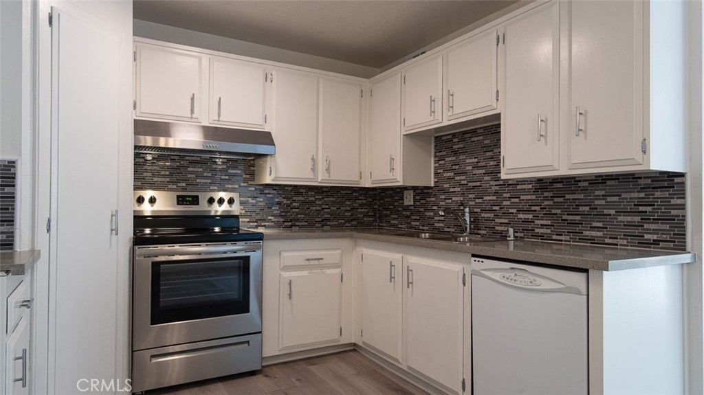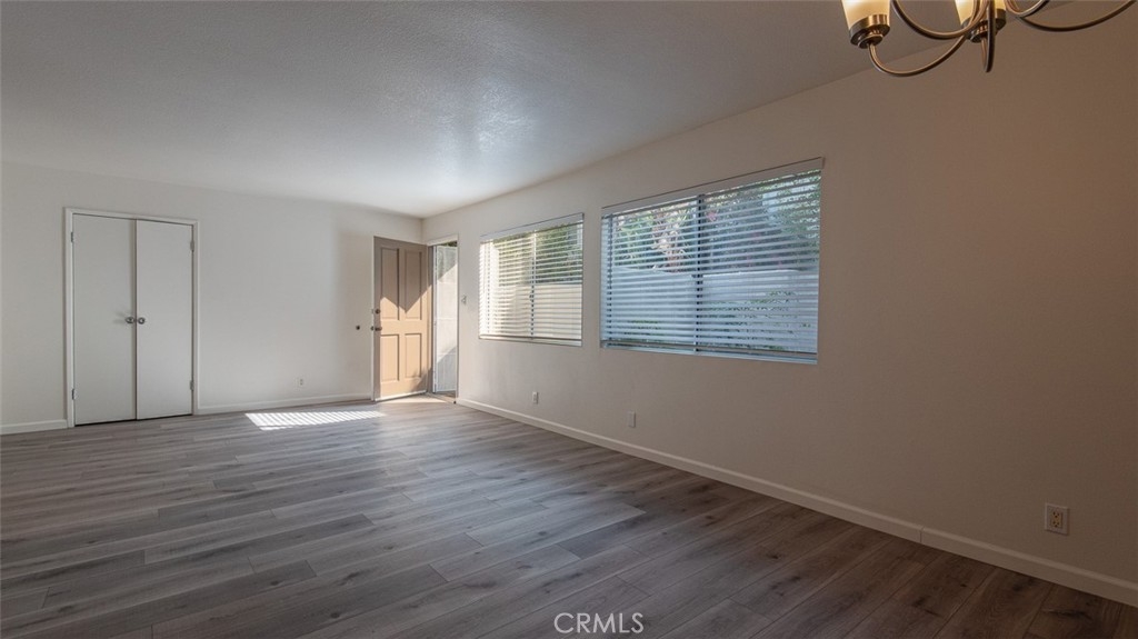 This is a pride of ownership first floor unit with 2 bedrooms and 2 full bathrooms. There is an enormous amount of closet space. The unit has been updated throughout. brand new hardwood floors, fresh paint throughout inside and outside, new lighting throughout, upgraded master bathroom, new floors new fixtures, lighting, tub, new marble vanity, new floors, new quartz countertops in the kitchen, new glass backsplash, new hardware throughout, and new window blinds. The open floor plan is ideal for entertaining plus there is a private enclosed patio. HOA dues are $387/mo which includes water, trash, sewer, cable, internet, community pools, hottub, community bbq areas, laundry facilities, maintenance staff on site, playground, rec room, gated entrances, controlled access, 2 parking spaces, 1 covered with storage space and 1 uncovered with a permit, playground for kids to play, a basketball court and security cameras throughout. Conveniently located minutes from restaurants, schools, shopping and next to 101 FWY!