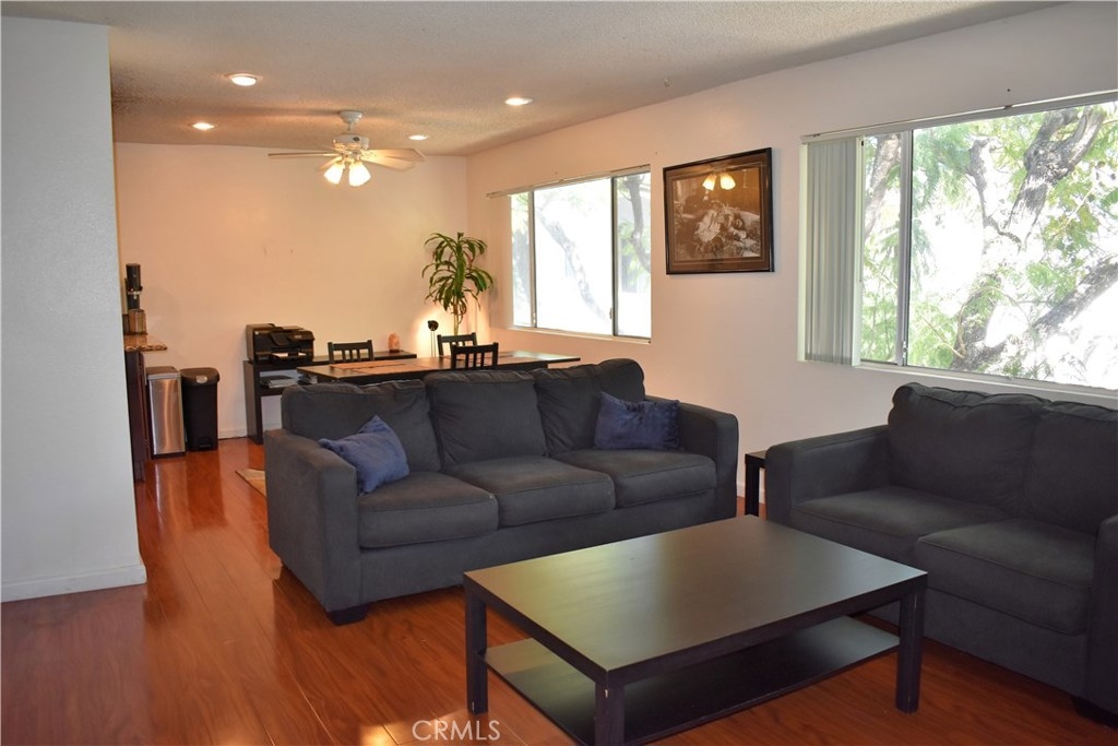 Super Rare 3 Bedroom 2 Bath Tarzana's Collinwood Condominiums! The Bright Living Room with adjoining Dining Room leads into the open gorgeous remodeled Kitchen. Upgraded Laminate Wood floors throughout. The remodeled Warm Kitchen features Coffee Washed Maple Cabinetry, Outstanding Stone work and Stone Backsplash. Modern Stainless Steal Hardware for the Custom Cabinets, along with the Stainless Steal Microwave, Sleek Black Electric Clean Stove Range Oven, Stainless Steel Deep Sinks, Modern Highly desirable Faucets, and Recess Lighting through out this lovely Home. Multiple Cabinets in this Kitchen gives lots of storage space to Cook and store Cookware items. Fan above Ceiling in Dining Area with ability to open Windows allows a breath of fresh air to come inside not to mention gorgeous private views of the Pool, Mature Trees and extremely well maintained Lush Landscaping. Located on the Second floor with no one above you making it even more desirable. Living Room is Light and Bright. All Base boards are upgraded throughout. Bathrooms were remodeled and have upgraded Vanities and Light Fixtures. Ceiling fans are also included in Master Bedroom as well which also boasts a view of the another Pool and other wonderful Mature Pine Trees. Mirror Closet Doors throughout. The Gated Community Complex is Super Safe with State of the Art Camera Systems. The Mailbox is conveniently near by the property. Features Play Ground Amenities, Pool, BBQ areas, and Community Laundry Room.