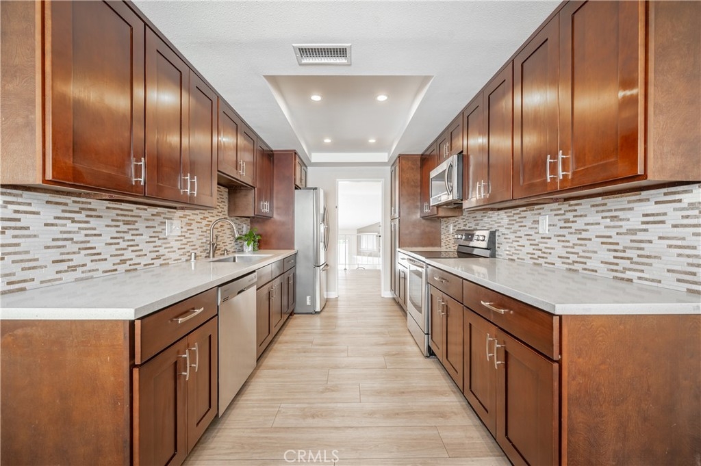 Welcome to your new home in the heart of Tarzana. Tucked into a serene, amenity-rich community, this beautifully maintained 3-bedroom, 3-bath tri-level townhome blends a thoughtful layout with meaningful upgrades-creating a space that feels as warm as it is functional. The main level welcomes you with soaring ceilings, natural light, and a flowing floor plan that balances openness and comfort. The living room features a cozy fireplace and floor-to-ceiling shutters that open to your private front patio- a peaceful outdoor retreat, perfect for morning coffee, sunset dinners, or simply unwinding. Just beyond, a welcoming dining area creates a cozy corner for meals or entertaining. The kitchen is both stylish and practical, featuring granite countertops, stainless steel appliances, an electric stove, rich cabinetry, and a sunny breakfast area to start your day. Also on this level is a flexible bedroom and full bathroom-ideal for guests, in-laws, a playroom, or home office, offering adaptability to suit your lifestyle. Upstairs, the spacious primary suite feels like a private escape, complete with its own balcony, built-in cabinetry, a vanity nook, and generous closet space. The en-suite bath features modern finishes, a luxurious soaking tub, and separate shower. A third bedroom and full bath round out the upper level with comfort and privacy. Downstairs, the garage level offers in-unit laundry, extra storage, and direct access to your oversized 2-car garage-bringing ease and functionality to daily life. Recent upgrades include a new roof (2024), brand-new washer and dryer, and electric stove-all ready for the next lucky owner. As part of a well-maintained community, you'll enjoy beautifully landscaped grounds and resort-style amenities including two sparkling pools, a spa/jacuzzi, a racquetball court, fitness room, and clubhouse. HOA dues also conveniently cover trash, water, earthquake insurance, roof maintenance, and common area upkeep-making life here as low-maintenance as it is elevated. Located just minutes from Ventura Blvd’s top dining and shopping, you're near local favorites like Blu Jam Café, Wanderlust Creamery, Gasolina Café, Katsu-Ya, and Baltaire, along with Trader Joe’s, Whole Foods, Gelson’s, Equinox, LA Fitness, and easy access to the 101 Freeway. Comfortable, refined, and full of heart- this Tarzana townhome is the lifestyle upgrade you’ve been waiting for. *Buyer cancelled due to personal reasons and at no fault to seller.*