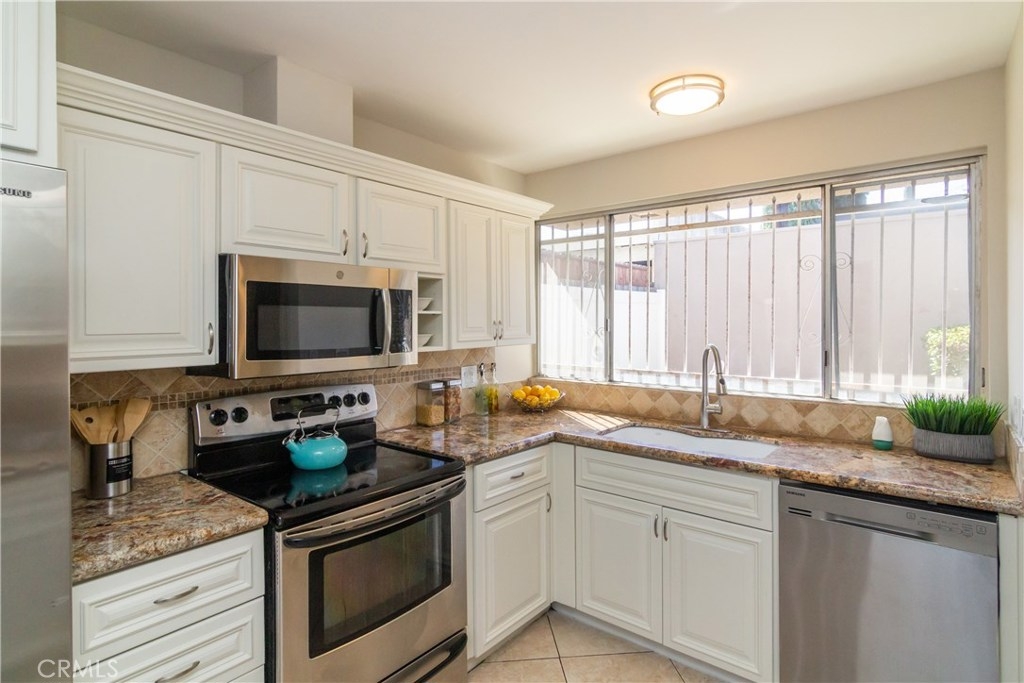 Great GATED Townhome very private and quiet location away from the street featuring 3 bedrooms + 2.5 bathrooms. Bright and open Upgraded kitchen & bathroom, smooth ceiling, recessed lights throughout, freshly painted new flooring upstairs, new doors, double pane windows, & a private yard. FEELS LIKE A PRIVATE HOME. The community features a sparkling pool, lush grounds, and a Club House. Conveniently located in a prime location just blocks away from Ventura shops and 101 Fwy & the 405 Freeway. HOA also includes water and Earthquake Insurance.