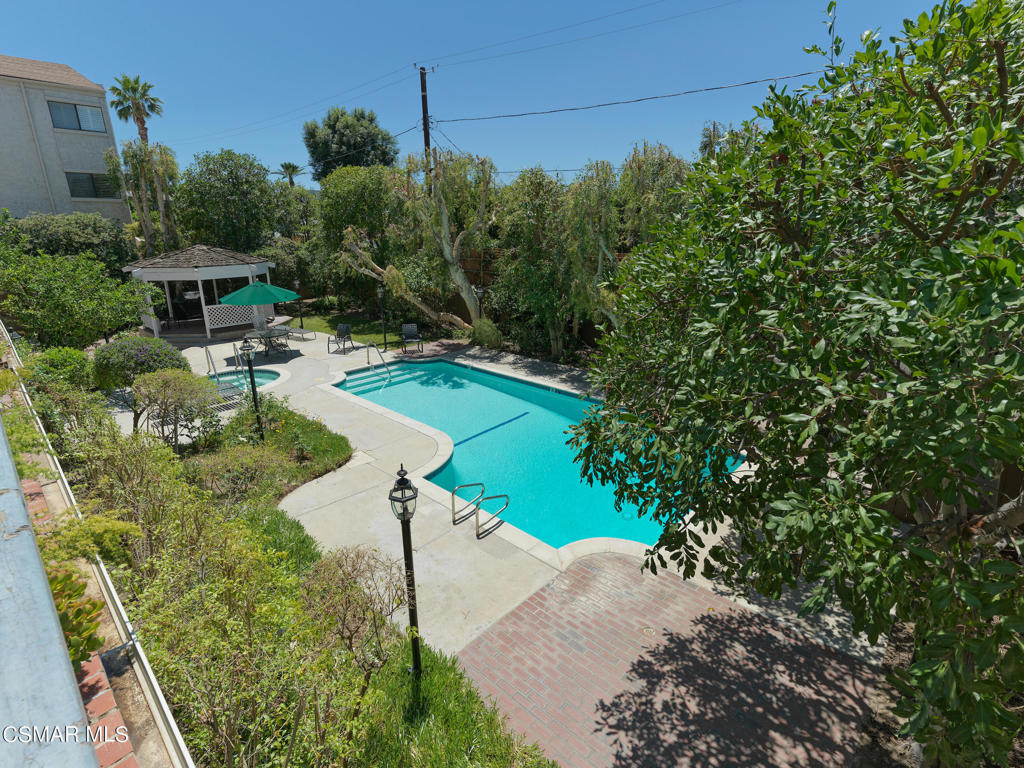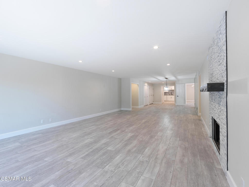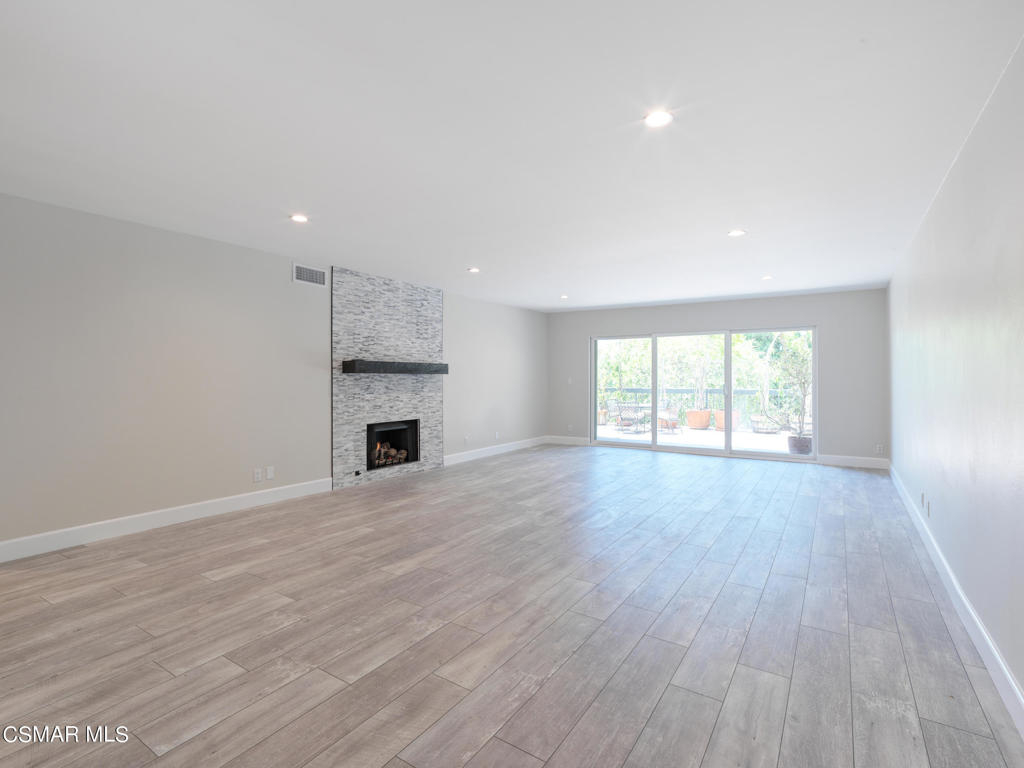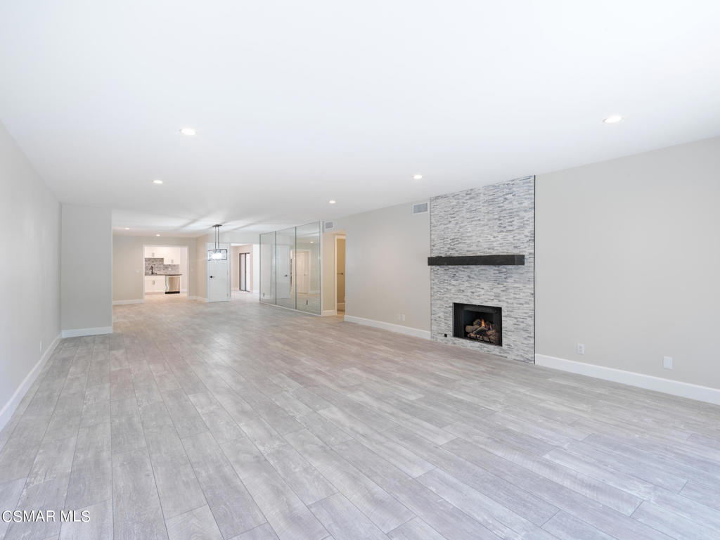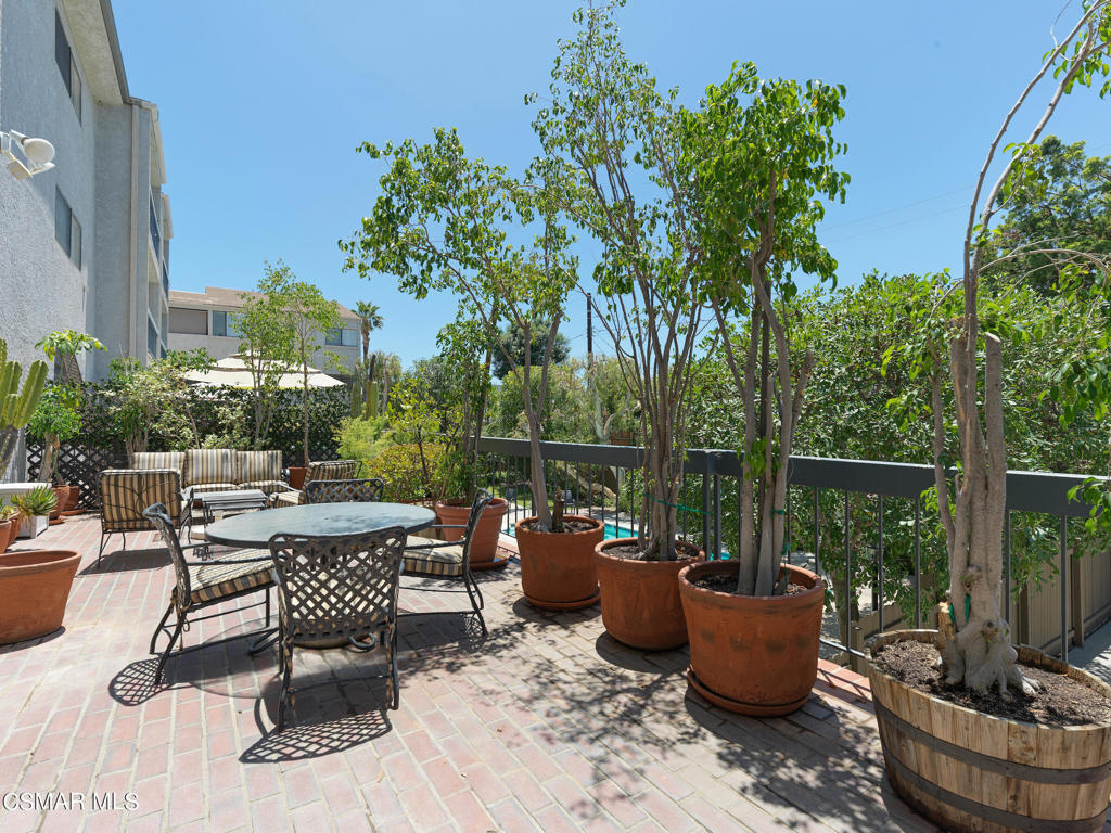 Redesigned, single-story condominium boasting over 2,000 square feet with a private and spacious terrace with room for al fresco dining and entertaining with views of lush, mature landscape.Sleek and modern interior features a great room with an impressive dining area and living room with fireplace opening to the terrace. Crisp, white kitchen with stainless steel appliances, custom counters and backsplash, hide-away laundry area, walk-in pantry and breakfast room.Spacious area adjacent to the kitchen with many possibilities such as den, home office, media room, etc...Two primary suites each with their own primary bath and walk-in closet.Additional features include wood-like floors, fresh paint, smooth ceilings, recessed and custom lighting, and tons of additional storage space.Well maintained common areas with controlled access entry.Gated parking garage offering two parking spaces(side by side).Community pool, spa, sauna, recreation room and outdoor BBQ. Great location near shops, markets and restaurants.