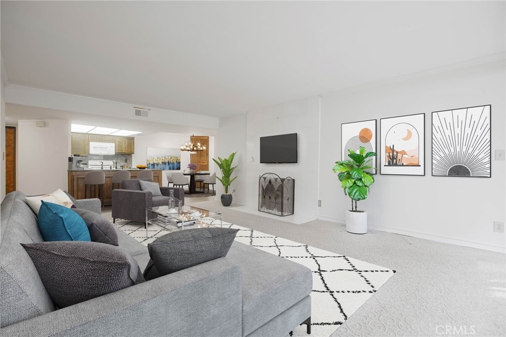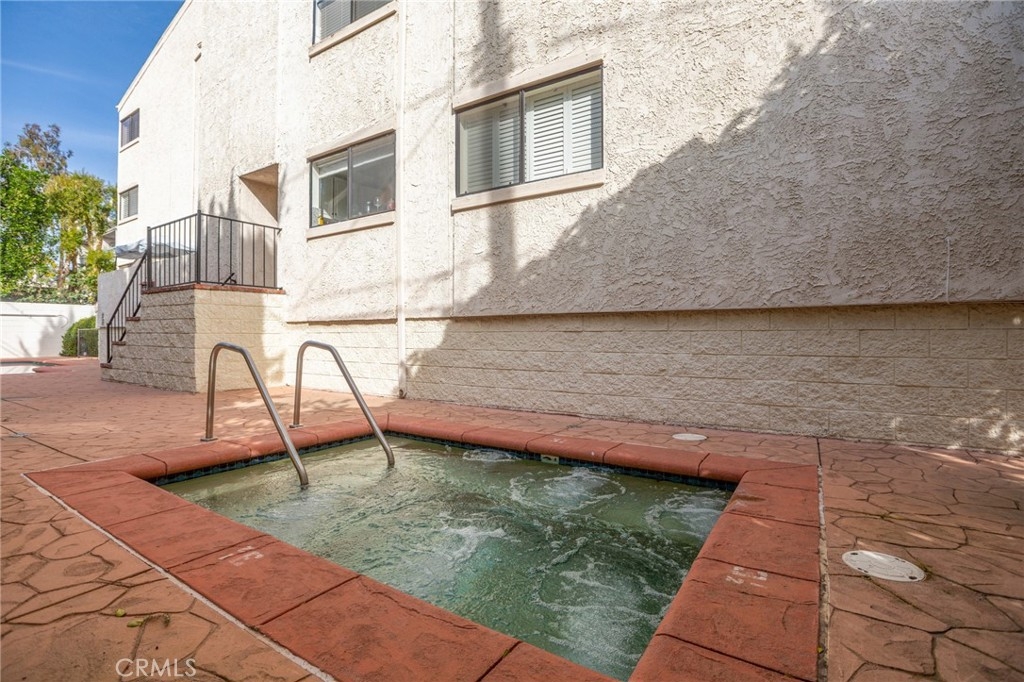 Must see this spacious condo in an immaculately kept, 24 unit, primarily owner-occupied complex. Enter through beautiful double doors on the first floor into a spacious, open floor-plan with a full laundry room, two on-suite bedrooms separated by the living room for maximum privacy. Each bedroom has both walk-in and wardroom closets with access to the private patio and the over-sized master boasts a separate mirrored vanity area with sink and lots of counter space adjacent to the master bath. The unique open kitchen design with ample cabinets and dining area has an expansive double-duty granite slab countertop which serves both the living room and kitchen- excellent for entertaining! The focal point of the living room is a fireplace with lots of dramatic possibilities. New window coverings throughout, loads of storage space and covered parking. Needs some updating but the floor-plan and the “bones” are there, ready for your personal touch. Great opportunity!!