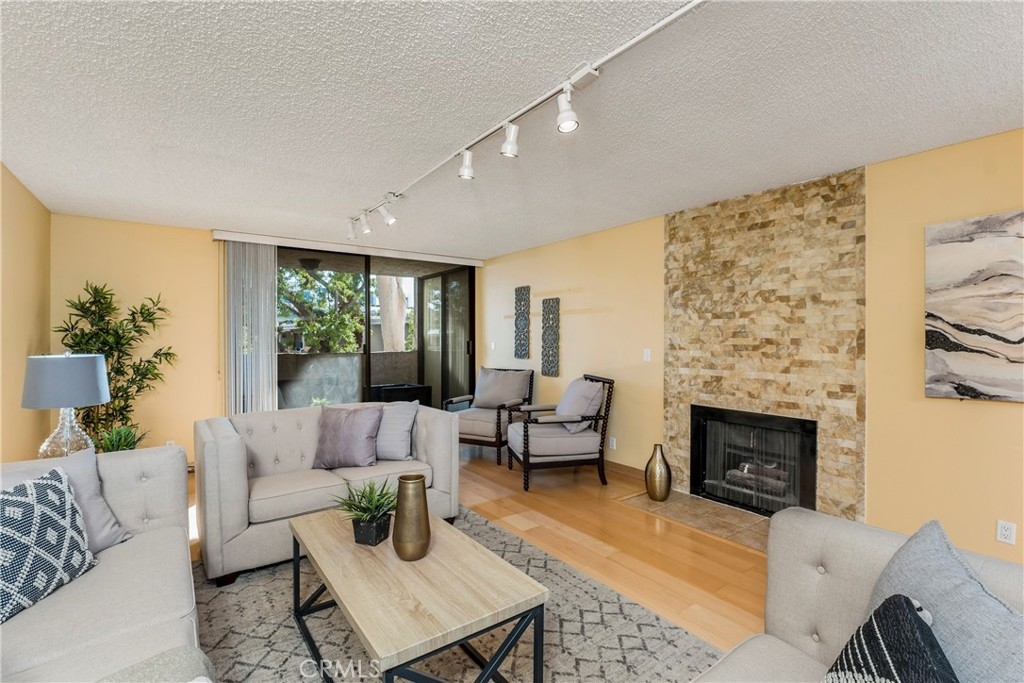 Charming single level Tarzana condominium situated moments from Ventura Blvd’s hottest shops and restaurants! Lush landscaping and secured entry welcome you into this lovely 2bd, 2ba residence. Beautiful floors lead you through the extensive floor plan with dining room offering mirror lined walls. The fully equipped kitchen with abundant pantry space and island with custom built-in buffet cabinet overlooks the spacious family room with relaxing fireplace, and glass sliding doors that grant access to the covered deck. Gleaming natural light illuminates the expansive master suite affording a walk-in closet, additional separate closet, glass sliding doors leading out to the deck, and master bath with dual vanities, and walk-in shower. Additional amenities include a laundry room, new HVAC system, fridge, trash compactor, underground tandem parking, community pool & spa, and so much more! Located just around the corner from Ventura Blvd and with close access to the 101 Fwy, this condo is the perfect place to call home!