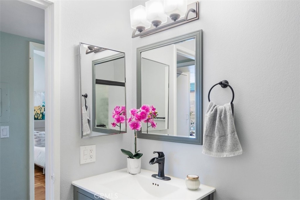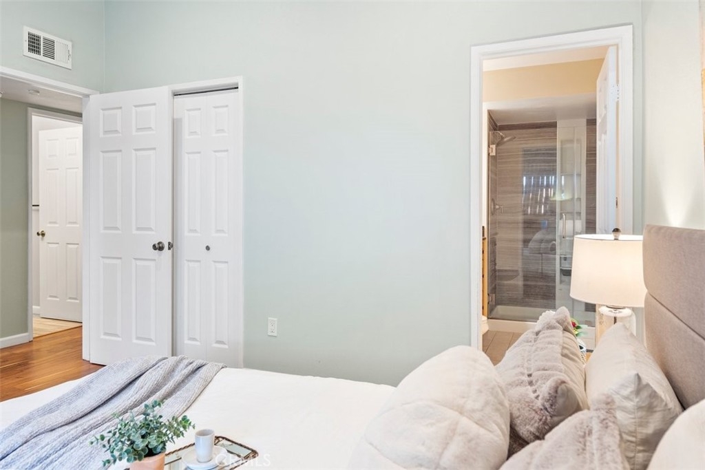 Fabulous, newly renovated 2 bedroom, 2 bath condo. Quiet gated complex - loft area is perfect for a creative space. Cozy and private location, easy access to LA, Hollywood, Burbank, and entertainment studios. Second floor-end unit with mountain views and valley sunrises and sunsets. Unit has a private entrance, surrounded by greenery. This open floor plan with lots of light, high vaulted ceilings, fresh paint, and private balcony in the master bedroom. Condo faces a quiet residential tree lined street. Kitchen is colorful with granite countertop and modern appliances. Condo has hardwood floors and recessed LED lights throughout. Inviting pool with BBQ area, newly painted exterior, community laundry room and 2 covered tandem parking spaces with security gate. Low HOA. Complex is 28 units with close knit neighbors. Orange Line Metro is one block away. One of a kind!