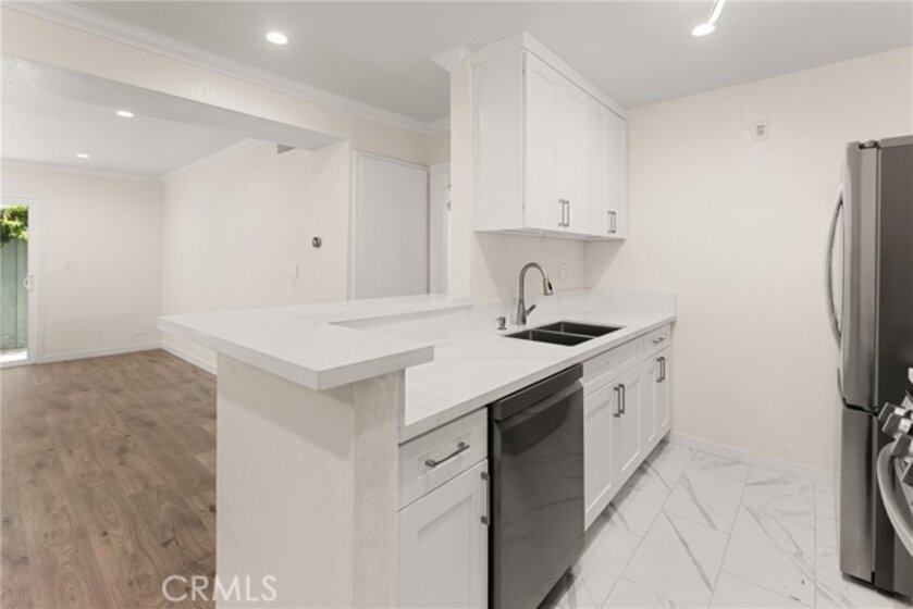 Beautiful, recently renovated condo with townhouse feel! This condo is an open-floor plan living room to kitchen with quartz countertops new laminate floors. All rooms are very spacious with master bedroom that includes walk-in closet and private bathroom. Cozy backyard and nearby parking that is rare for common condos. Great location in the heart of Tarzana with a ton of amenities.