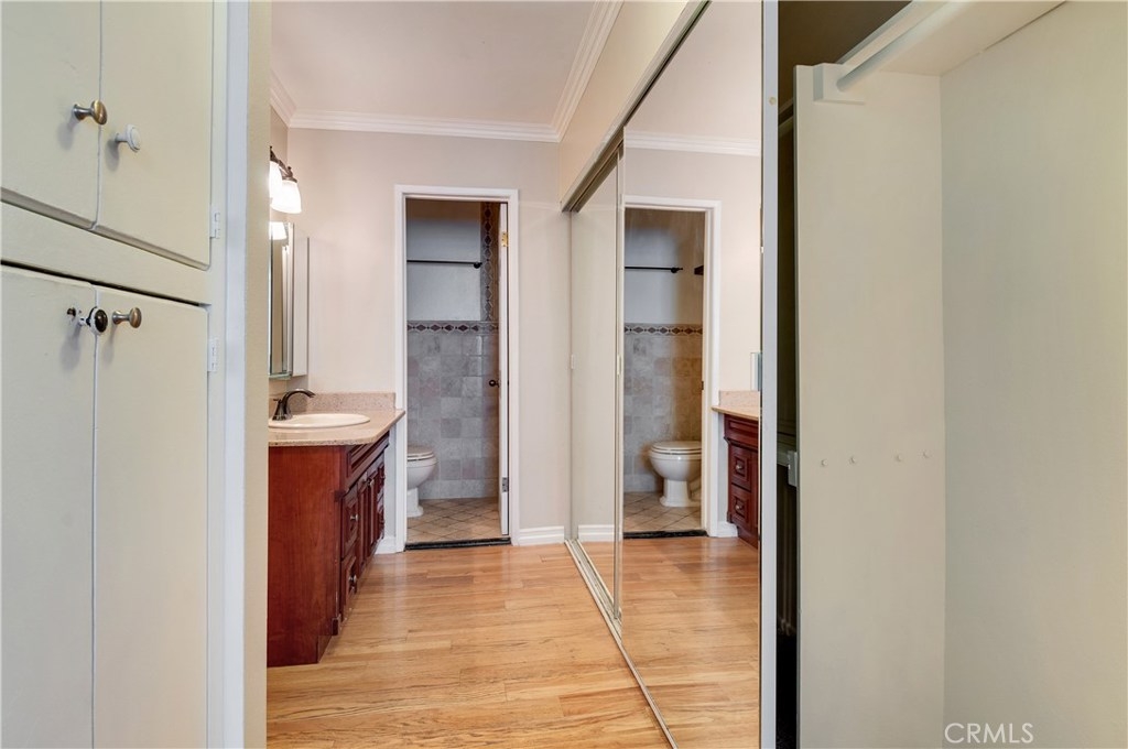 Spacious and well appointed Parc Tarzana condo with 2 Master Bedrooms! This unit is light and bright and features hardwood floors and a beautiful kitchen with custom cabinetry, granite countertops, and high end stainless steel appliances. Upper level unit located close the stairway with 2 parking spaces included! The complex features low HOA dues, a swimming pool, BBQ, sitting area, common laundry facility, and is pet-friendly. Centrally located in Tarzana with easy freeway access, close to shopping, parks, and schools. Move in to this beautiful condo or purchase as a great investment with high rents in the area!
