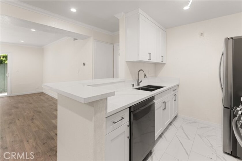 Beautiful, recently renovated condo with townhouse feel! This condo is an open-floor plan living room to kitchen with quartz countertops new laminate floors. All rooms are very spacious with master bedroom that includes walk-in closet and private bathroom. Cozy backyard and nearby parking that is rare for common condos. Great location in the heart of Tarzana with a ton of amenities.