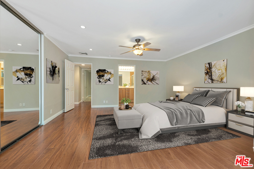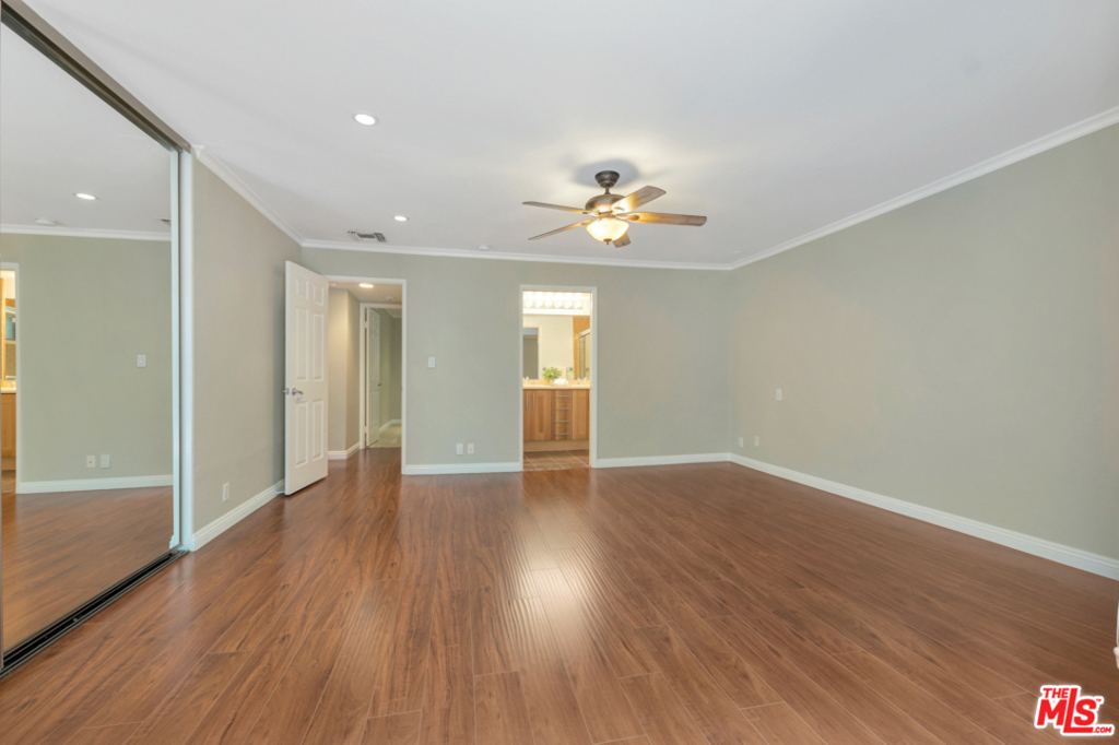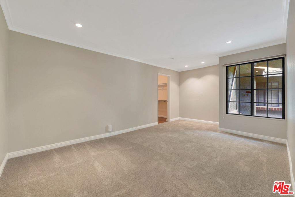 Don't miss this beautiful bright single story 2+2 condo with an inviting open floor plan. The spacious living room has a fireplace (decorative) and sliders leading out to a grand terrace with view of the pool area. Perfect place to entertain family and friends. The gourmet kitchen features granite counters, generous storage and center island with wine refrigerator. The spacious sized primary ensuite bedroom with large closet has French doors leading out to the terrace. The second bedroom has new carpeting and walk-in closet as well as access to the hall bathroom. There is recessed lighting throughout the unit. Off the front hallway, the washer/dryer hookup for side by side can be found behind the wood shutter doors. This beautifully maintain quiet building has underground gated tandem parking plus additional guest parking. Conveniently located close to shopping, restaurants, transportation and across from the Providence Cedars Sinai Tarzana Hospital. The Best of Tarzana living!