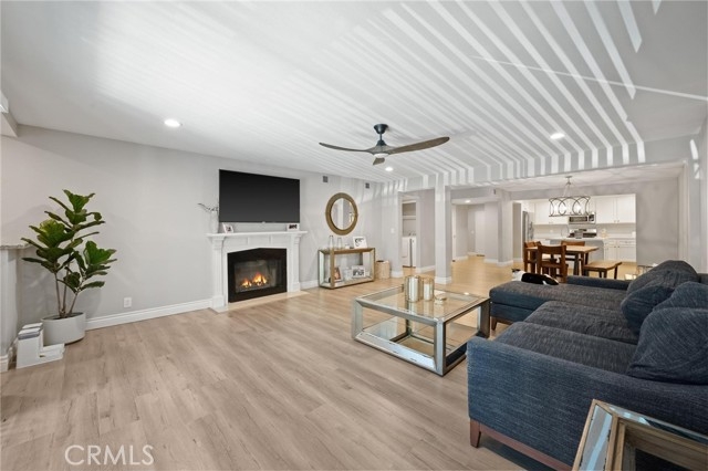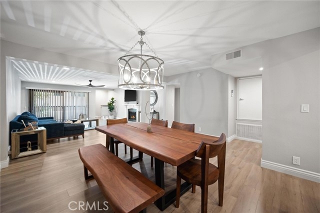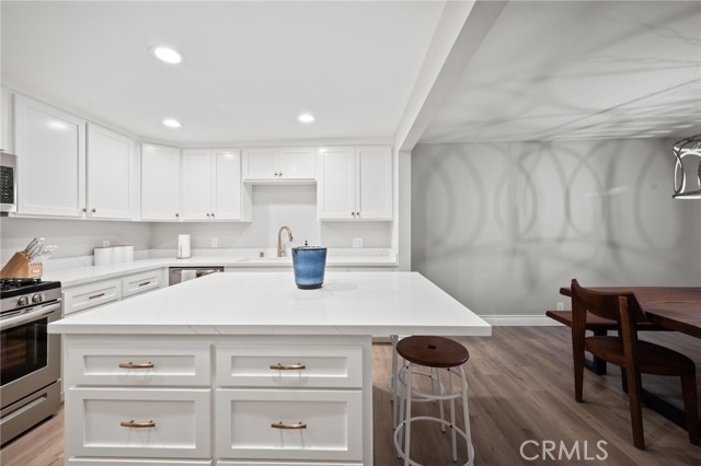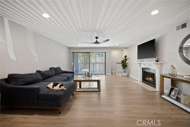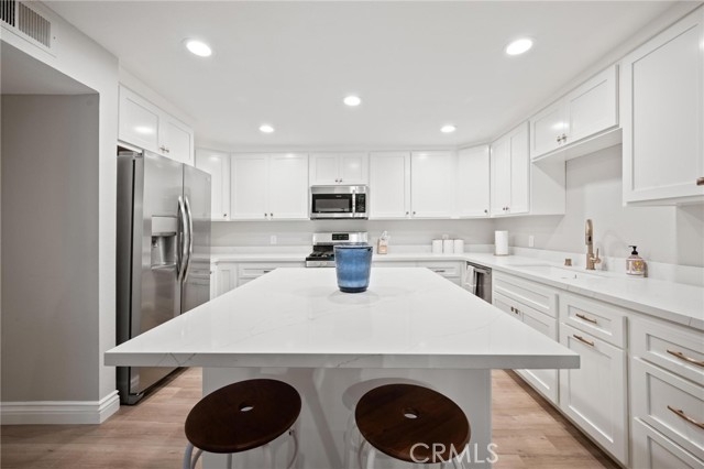 Completely Remodeled! This turn-key single level condo has a large open floor plan and features an astounding gourmet kitchen with custom cabinets, stainless steel appliances, granite counters, spacious island with lots of storage underneath. The dining area is perfect for intimate dinners or larger parties and entertainment. NEW laminate floors and NEW shutters all add to the elegance and appeal. The generous living room encompasses a beautiful and cozy fireplace and a wet bar. Spacious master bedroom, beautiful tubbed bathroom, fresh paint and new laminate floor. The other bedroom has large walk-in closet, fresh paint throughout and laminate floor. Washer/dryer hookups. Sip your wine and relax on the large balcony which invites a lot of light. Or enjoy the sparkling pool / jacuzzi which are steps away, surrounding you with plenty of beautiful greenery. This charming building has very well-maintained common areas ,underground parking and more guest parking. Located a block north of Ventura Blvd, 101 freeway, Cedar Sinai Hospital, gym, Restaurants, shopping, Gelson's, Vons are just a few to name. Gated community pride of ownership. Middle building is away from street.