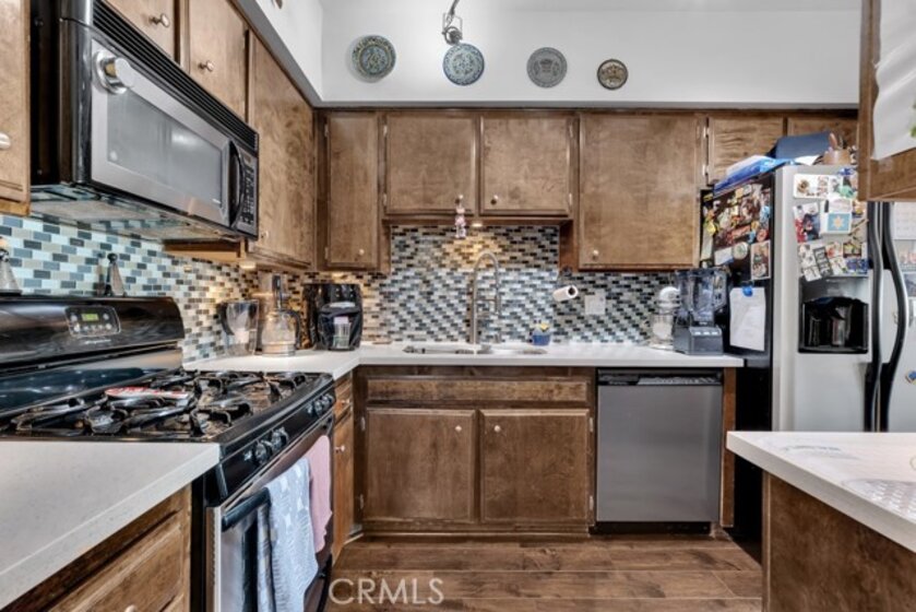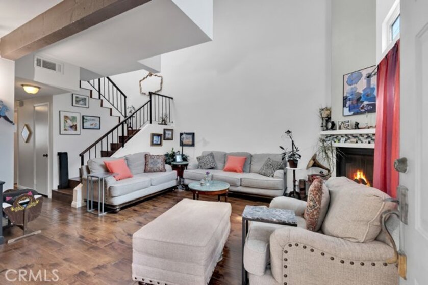 Step into this stylishly updated Tarzana townhouse, where an open-concept living space is highlighted by soaring cathedral ceilings and a warm, inviting fireplace. Thoughtfully remodeled, the home features sleek laminate flooring throughout, double-pane soundproof windows for added comfort and tranquility, and a dedicated dining area ideal for entertaining. The contemporary kitchen is outfitted with stainless steel appliances, quartz countertops, a mosaic glass backsplash, under-cabinet lighting, and custom ceiling fixtures, seamlessly blending function and design. Upstairs, two spacious en-suite bedrooms offer privacy and comfort, along with a convenient laundry area complete with a high-efficiency front-load washer and dryer. Additional highlights include ample storage, central air and heat, and a charming patio just off the living room, perfect for indoor-outdoor living. The property is located within a secure, well-maintained building featuring the ButterflyMX smart intercom system for seamless phone-based access, plus side-by-side parking in a gated garage and guest parking. Ideally situated between Encino and Woodland Hills, the home is directly across from a park and Starbucks, with Ventura Boulevard, Westfield Topanga, and the new Rams Village just minutes away—offering endless shopping, dining, and entertainment options. This is a fantastic opportunity not to be missed; schedule your private showing today.