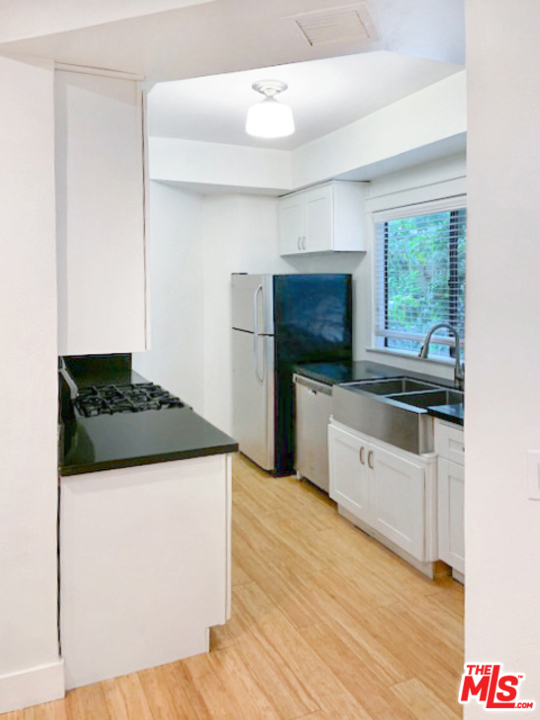 This turnkey condominium is nestled in a beautiful complex in the heart of Tarzana. It has a very high walk score & it's just minutes away from Ventura Blvd & Lake Balboa's extensive recreational facilities. Features: Towering shade trees and extensive masonry enhance the community's curb appeal. A flowing 684 square foot open concept floor plan, sliding glass door to the patio bathes the living room in natural light, and it's further enhanced by its upgraded kitchen & bathroom, laminate and tile flooring, cozy gas fireplace, and lighted ceiling fan. The family's cook is going to truly appreciate the open kitchen's abundant cabinets, ample stone counters, built-in stainless steel appliances, durable dual basin stainless steel sink. The spacious bedroom has a large built-in custom closet, lighted ceiling fan, and private balcony. 1 full bathroom, central air and heat, 2 dedicated subterranean parking spaces. The complex has a secure lobby, serene courtyard, elevator, and sparkling pool