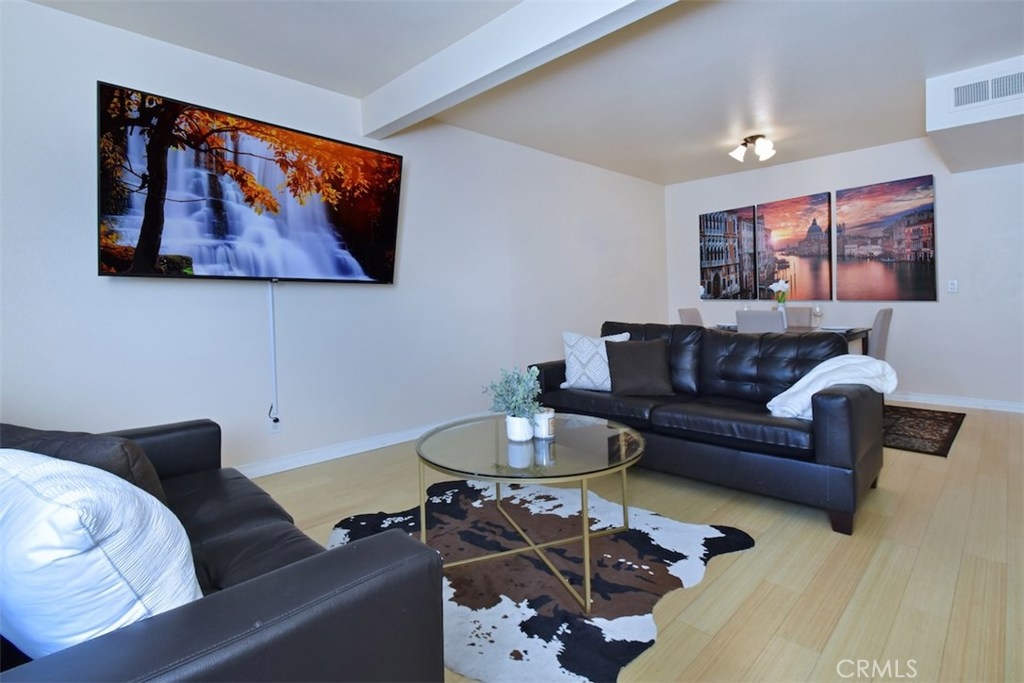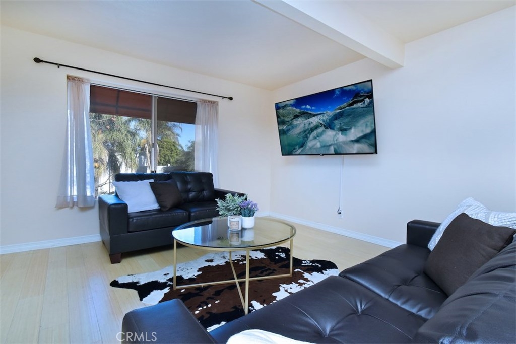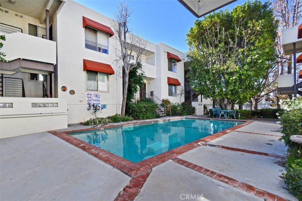 Situated in a private community with secure entrance gates, this inviting, top-floor 2 BR unit offers easy access to local freeways, shops and restaurants. Located in a community with a pool which includes ample room for lounging, the home offers stunning bamboo floors in most of the living areas, an updated kitchen and a dedicated, additional storage room. A breakfast bar separates the open concept living room/dining area from the kitchen, which features striking, “Van Gogh blue” granite counters, white cabinets, recessed lighting and built-in appliances. The versatile floor plan is enhanced by the dressing area/separate vanity off the updated bathroom, which has granite counters and ample room to get ready. A sunny private balcony off both of the bedrooms adds to the appeal. Other highlights include a covered, two car parking space in the gated parking area, a community laundry room and a newer central HVAC system. Stroll the sidewalks in front of this quiet community to many options for dining or shopping, pull the bikes out for a fun afternoon outside, or quickly access local freeways and take advantage of everything that Southern California has to offer—the options are endless!