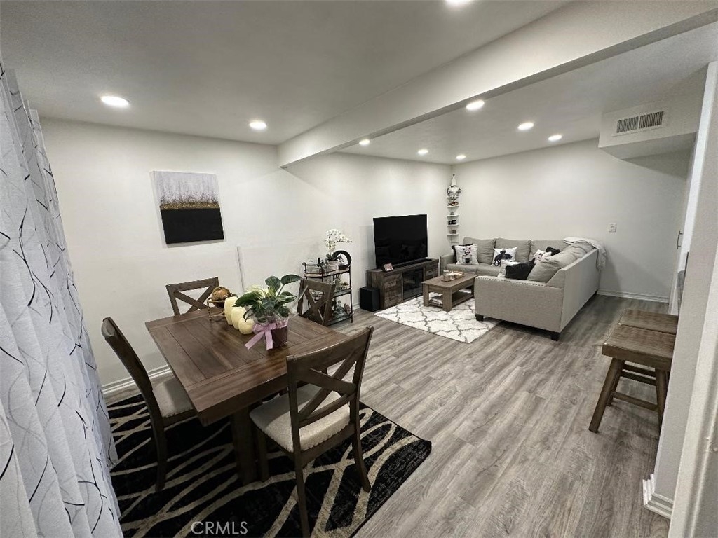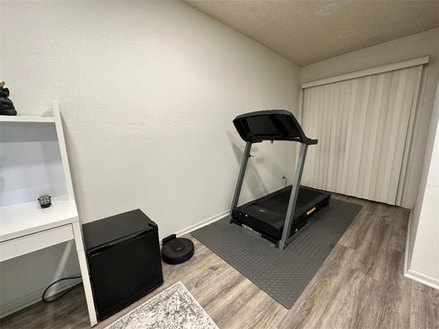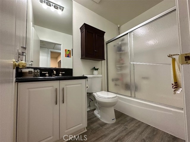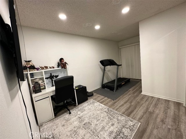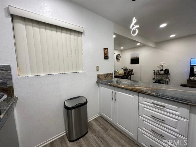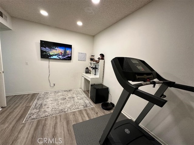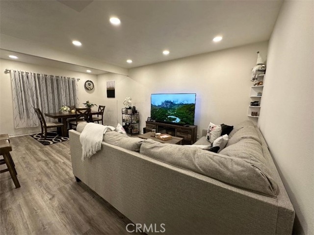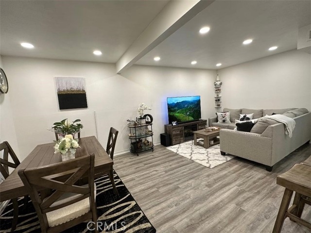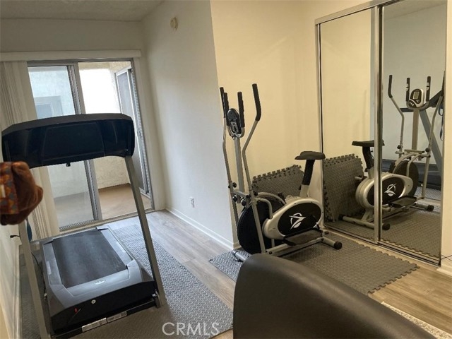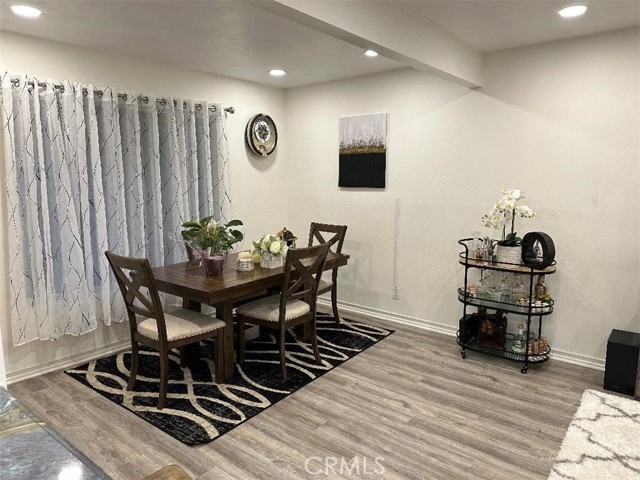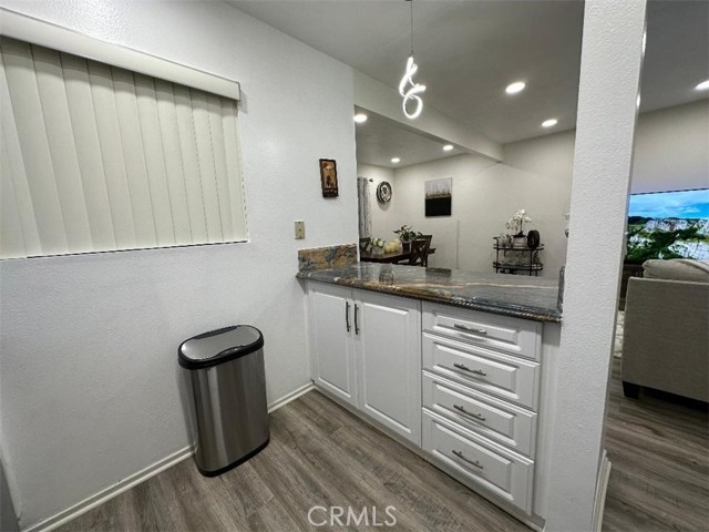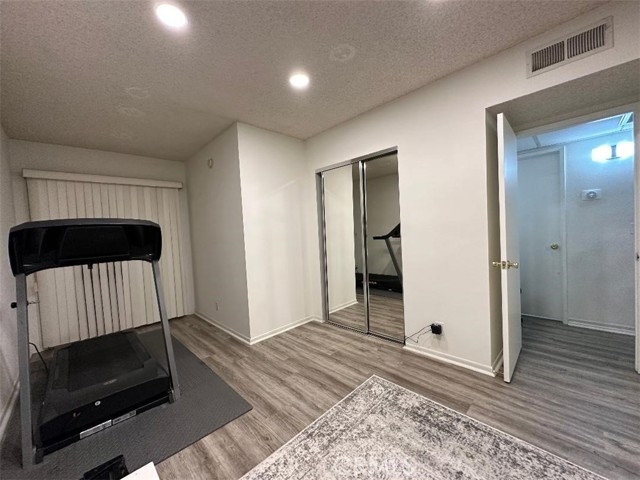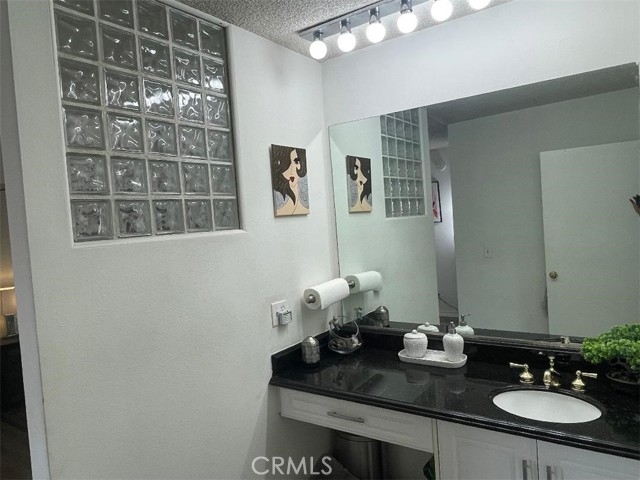Well maintained and security gated Condominiums. This 2 bedroom, 1 bath unit is on the top floor. Updated kitchen has stunning “Van Gogh Blue” counters with white cabinets, Recessed lighting and built-in appliances, dishwasher, plus an electric stove and microwave are included. A breakfast bar separates the open concept. Recessed lighting in living room and dining room. stunning laminate flooring in living/dining rooms, bedrooms, hall and bathroom. Good size master bedroom has a private vanity area with sink, separate from the full bathroom, allowing 2 people to get ready for work at the same time! Both bath areas have cabinets and stunning black granite counter tops. Both bedrooms have sliding doors to the private patio. Two car tandem covered parking spaces close to the stairs leading to the unit. Parking area is also gated. Central heat and air. The complex offers additional storage room for this unit at no additional cost. The unit is approx. 5x5x8, and there is more space for storing your bicycle. There is a community laundry area. Community pool includes patio tables & chairs and lounging chaises. A short walk to shops and restaurants on Ventura Blvd.