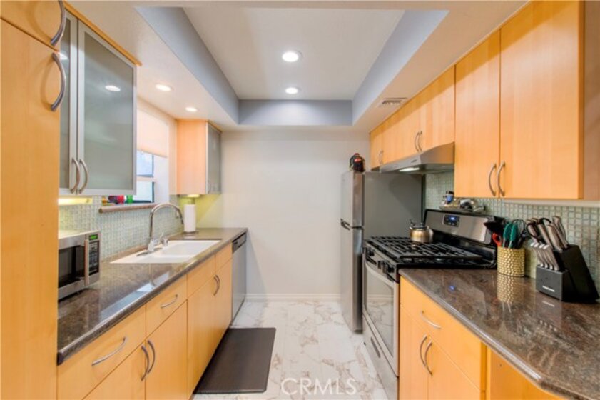 Beautifully renovated 2-story townhome with 2 Bedrooms and 2 baths located in a desirable Tarzana neighborhood! Ground level private own access to the unit, spacious patio, and direct access to private 2-car attached garage with side by side washer and dryer (included in sale). Formal entrance feels secluded and leads you into a light and bright setting throughout. Kitchen features stainless steel appliances, designer cabinets, granite counters, tile backsplash, imported marble flooring and breakfast nook. Conveniently placed full bath downstairs offers custom shower with imported tiles and pedestal sink. Upstairs full bath offers custom cabinets with marble countertops and imported marble flooring. Large Master bedroom boasts large walk-in closet and balcony. Additional features include, hardwood flooring in living room and bedrooms, recessed lighting, large hallway linen closet upstairs, exquisite touches and much more. Community features include pool, spa, bbq area, sports court, fitness room, multi-purpose rec room and secured gated entrance. Easy access to 101 freeway, walking distance to restaurants, shopping and supermarkets!