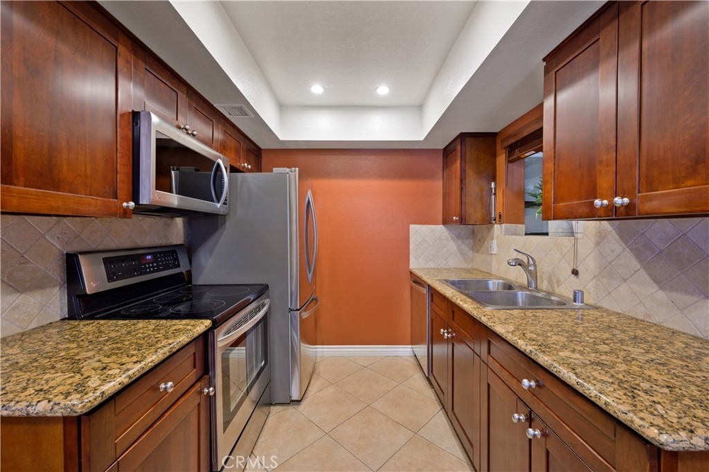 Don’t miss this affordable condo in a gated community! You'll enjoy every square inch of this 2-bedroom, 1.5-bathroom home. The unique floor plan of this classic Tarzana condo perfectly complements the cozy ambience and beautiful updates featured throughout. Your experience begins with the intimate living room underscored by gleaming laminate flooring. The room's focal point is an inviting fireplace surrounded by elegant white marble tiles. An upgraded powder room is also conveniently located on this level. The sliding glass door leads from the living room, out to your private sun-splashed balcony. The layout flows seamlessly into the kitchen appointed with warm maple cabinets and sleek stainless appliances that are beautiful, sturdy and supremely user-friendly. The separate dining area is perfect for intimate gatherings. When day is done, the open staircase beckons you to the upper level, appointed with two bedrooms and a full, upgraded master bathroom. Views of the distant mountain range and clear blue skies await just outside the master bedroom, when you step onto the adjoining balcony. Washer/dryer on this level makes laundry day easy and effortless. A detached 2-car garage and additional guest parking are included with the property. The gated Suntree community offers resident amenities including a sport court, pool, spa and workout room. Tarzana also offers plentiful options for dining and shopping. Nearby Topanga State Park is an open-access recreational area -- no fees or permits needed -- where visitors can enjoy hiking and mountain biking. Highway 101 and the 405 freeway are close, providing easy access to UCLA, The Getty Center and downtown LA.
