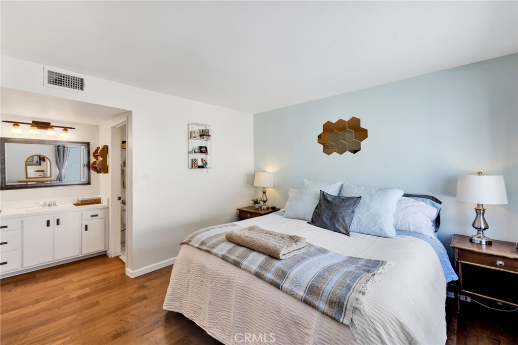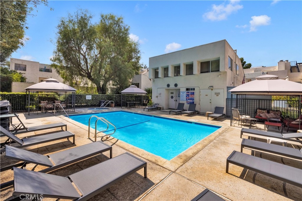 A rare gem, discover one of the highly sought after top floor 2 story condo which consists of 3 BEDROOM, 2.5 BATH units in the Suntree Townhomes complex, located right in the heart of Tarzana. Nestled amidst lush greenery, fruit trees and rose gardens, the gated complex is a well-maintained community, with recorded surveillance and security patrol, solar-heated pool and spa, fitness centre, walking paths, pet run, BBQ, basketball court and private clubhouse. This turn-key, two-story condo features contemporary tiles and engineered hardwood flooring, crown molding and ample natural lighting throughout. Galley kitchen includes an electric range and pass-through to a separate formal dining room. The living room has a gas fireplace and opens onto a balcony overlooking a private courtyard. A laundry closet with washer and dryer hookups and built-in shelves is conveniently located in-unit. The owner's bedroom suite includes a walk-in closet, bathroom with a spa bathtub and separate vanity. Two additional, well-appointed bedrooms offer comfortable privacy ideal for a home office, guest room and/or children's room. Plenty of closets and storage space both upstairs and downstairs. All three bathrooms have been upgraded and a brand new central AC features a wireless-enabled thermostat. A two-car garage (detached, right next to the unit) offers plenty of additional storage space. Fabulous location a short distance from Home Goods, Whole Foods, Gelsons and Providence Hospital, as well as dozens of fantastic shops and restaurants along Ventura Boulevard. Target and Trader Joes are also within a five-mile radius. HOA includes earthquake insurance.