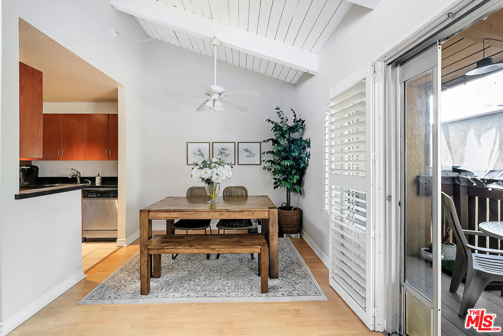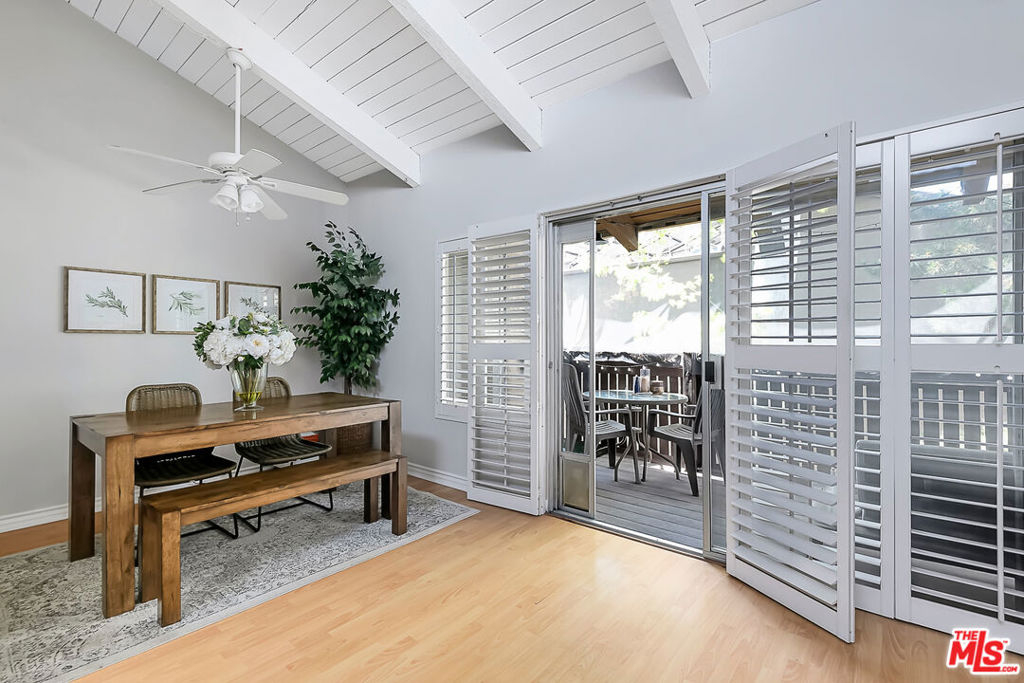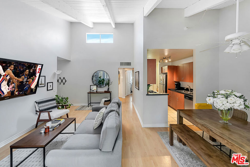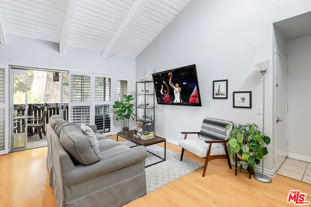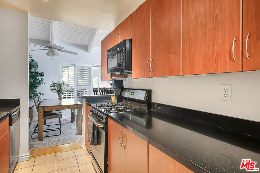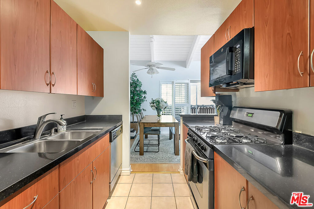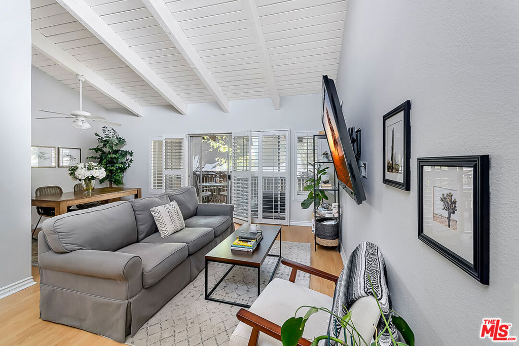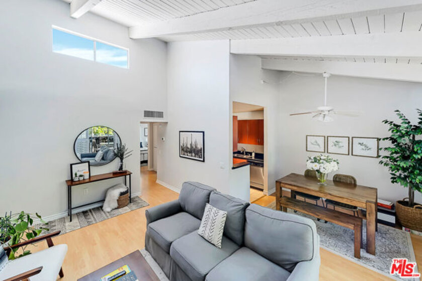 Presenting this gorgeous, light and bright 2 bedroom and 1 bathroom condo. Located in the heart of Tarzana in the quiet, gated community of Tara Village, this condo has it all! The living and dining area boast high vaulted white wood-beam ceilings with direct access to a covered porch, perfect for relaxing and dining al-fresco. The kitchen comes fully equipped with stainless steel appliances. Off of the living area are the two bedrooms and bathroom. The master bedroom is spacious and has two large closets. This gated park-like community is very quiet and friendly. The grounds are complete with a playground, pool, fitness center, and recreational room. The HOA covers water, trash, gas and sewer. This home is close to the Tarzana Square with a variety of medical facilities, shopping and delicious restaurants nearby!