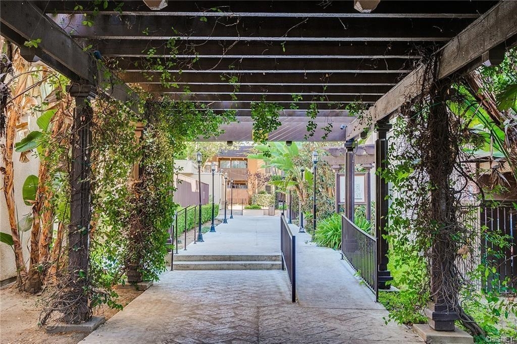 Immaculate Light and Bright Condo in Desirable Tarzana. Enter this beautiful Tara Village unit to an airy, modern living space graced with vaulted barrel ceilings, wood floors, floor to ceiling windows and sliding glass doors leading to an expansive and peaceful patio overlooking the well-manicured grounds. A dining room, perfect for serving your family favorites leads you to a well-equipped kitchen with wood countertops, walk-in pantry, and sleek white cabinetry with updated fixtures. The two bedrooms have angled ceilings making the ample sized rooms feel even larger and the master bedroom boasts a walk-in closet and updated en suite bathroom with granite counters and marble encased shower/tub. The second bathroom features similar upgrades. Additional amenities include laundry hookups in the unit, two tandem covered parking spaces, community amenities including gym, sauna, pool, jacuzzi, clubhouse, and 24-hour Security. Perfectly nestled in safe and convenient Tarzana and close to 101 & 405 freeways for easy commute times, fine dining and retail shopping, don’t miss this immaculate condo and make it yours today!