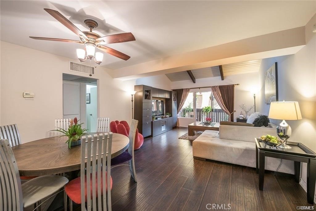 One of the premier locations in the desirable Tara Village Complex, with onsite management! This upper condo unit is in a gated community that is surrounded with lush gardens and mature trees. It offers both a private and peaceful environment which includes the following: 3 bedrooms, 1.75 baths, with conveniently located two tandem covered carport spaces. Open floor plan, foyer entry, spacious living room with vaulted ceiling and sliding doors that lead to a private balcony overlooking the pool area. The master suit is located on one side with two other bedrooms located on the other, providing a more secluded living space. Floor to ceiling mirrored/custom closets. Appealing laminated flooring throughout with tiled flooring in baths and kitchen. Brand new Whirlpool S.S appliances which were just installed for your enjoyment. Association dues include: Trash, Water AND Gas. Association amenities include: Pool, Spa, Gym, Sauna, Clubhouse, BBQ area, Playground for the kids. This complex is also pet friendly. Easy access to freeways, public transportation, shops and restaurants. Property was previously furnished. Furniture are for illustrative purposes only and are not included.